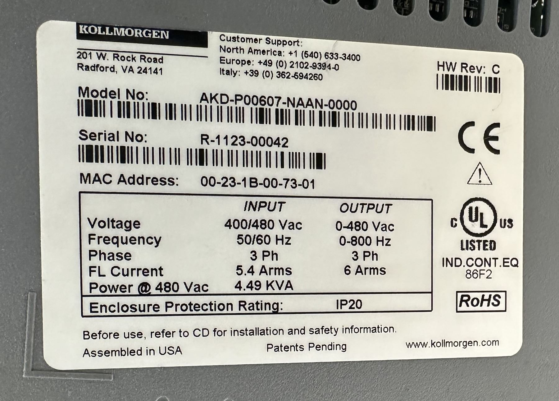 Kollmorgen #AKD-P00607-NAAN-0000 Servo Drive
