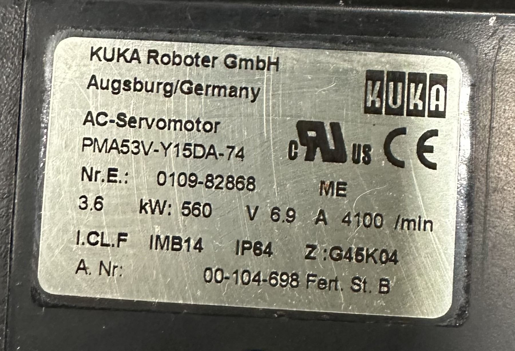 Kuka #00-104-698/PMA53V-Y15DA-74 AC Servo Motor