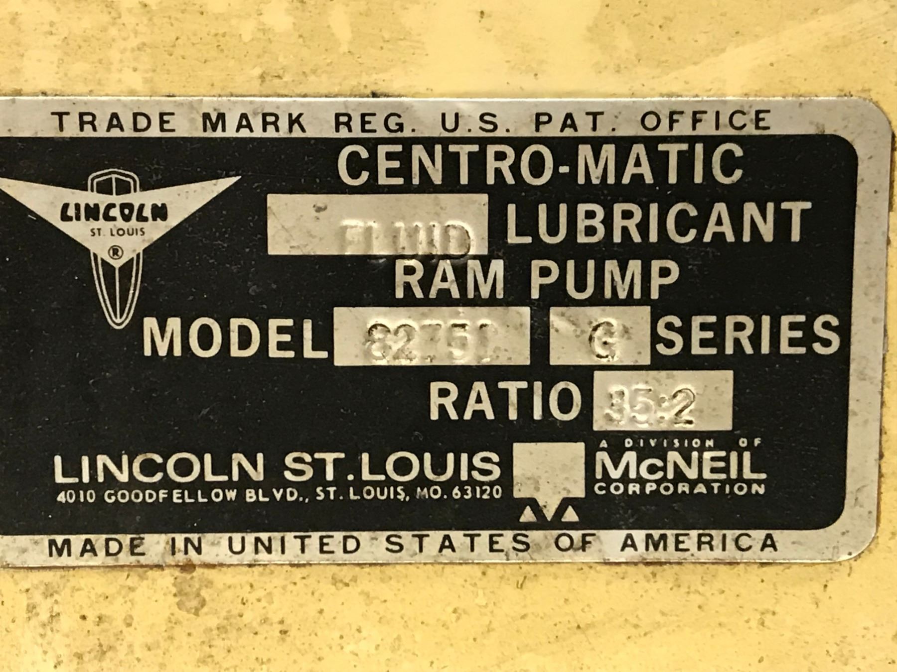LINCOLN 82753 G CENTRO-MATIC FLUID LUBRICANT RAM PUMP