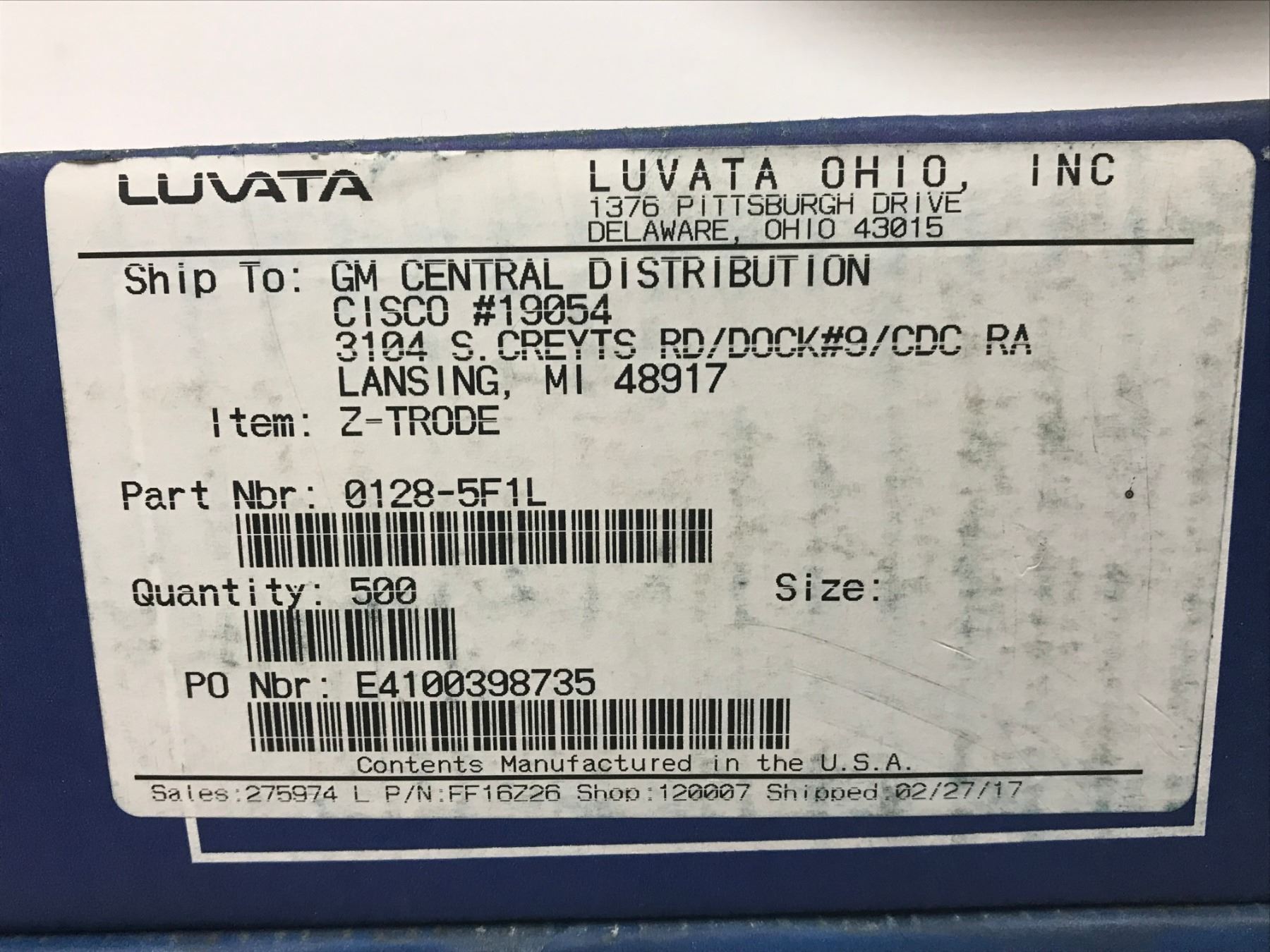 LOT LUVATA 0128-5F1L WELD TIP Z-TRODE