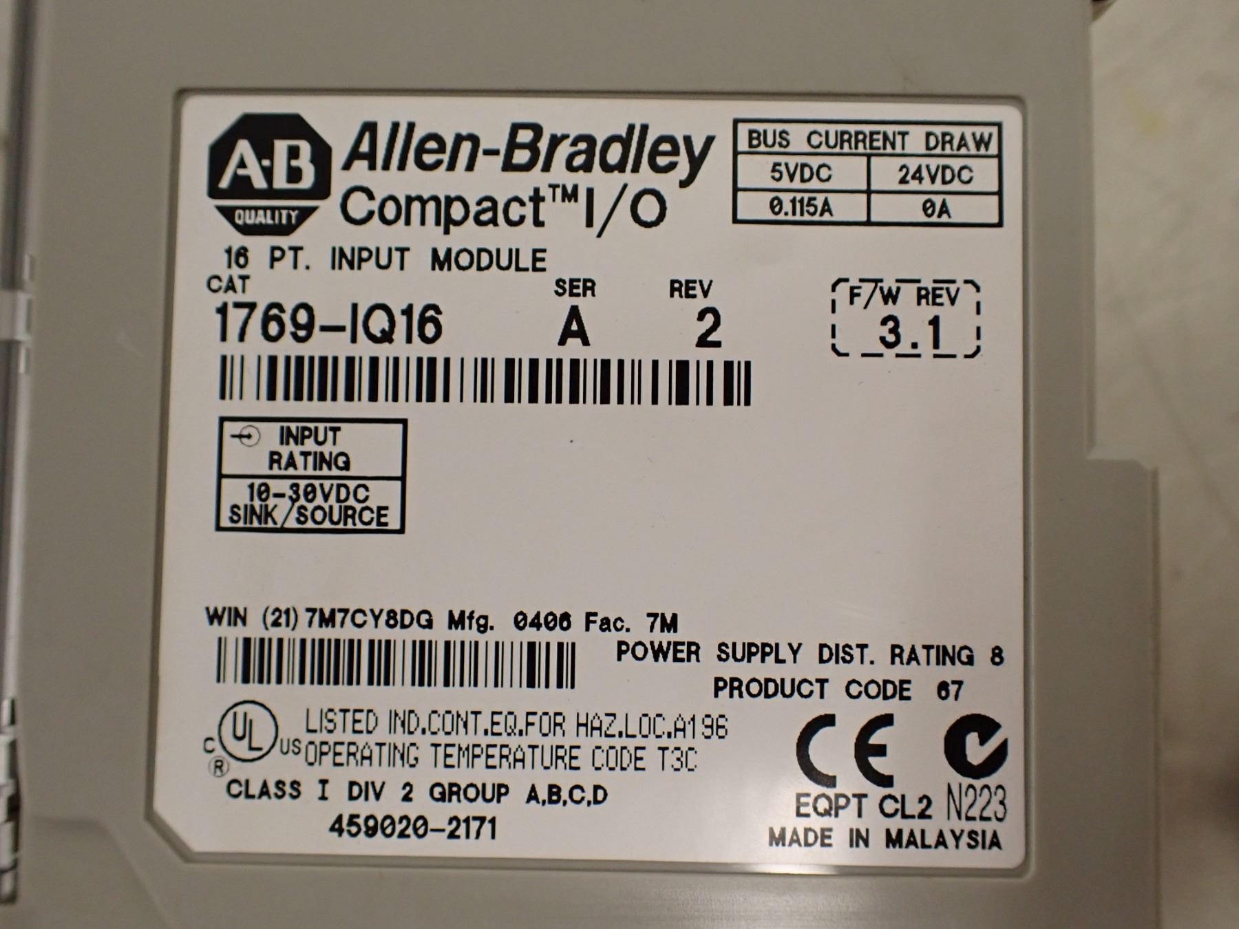 *LOT OF 11* ALLEN BRADLEY 1769-IQ16 COMPACT I/O MODULE