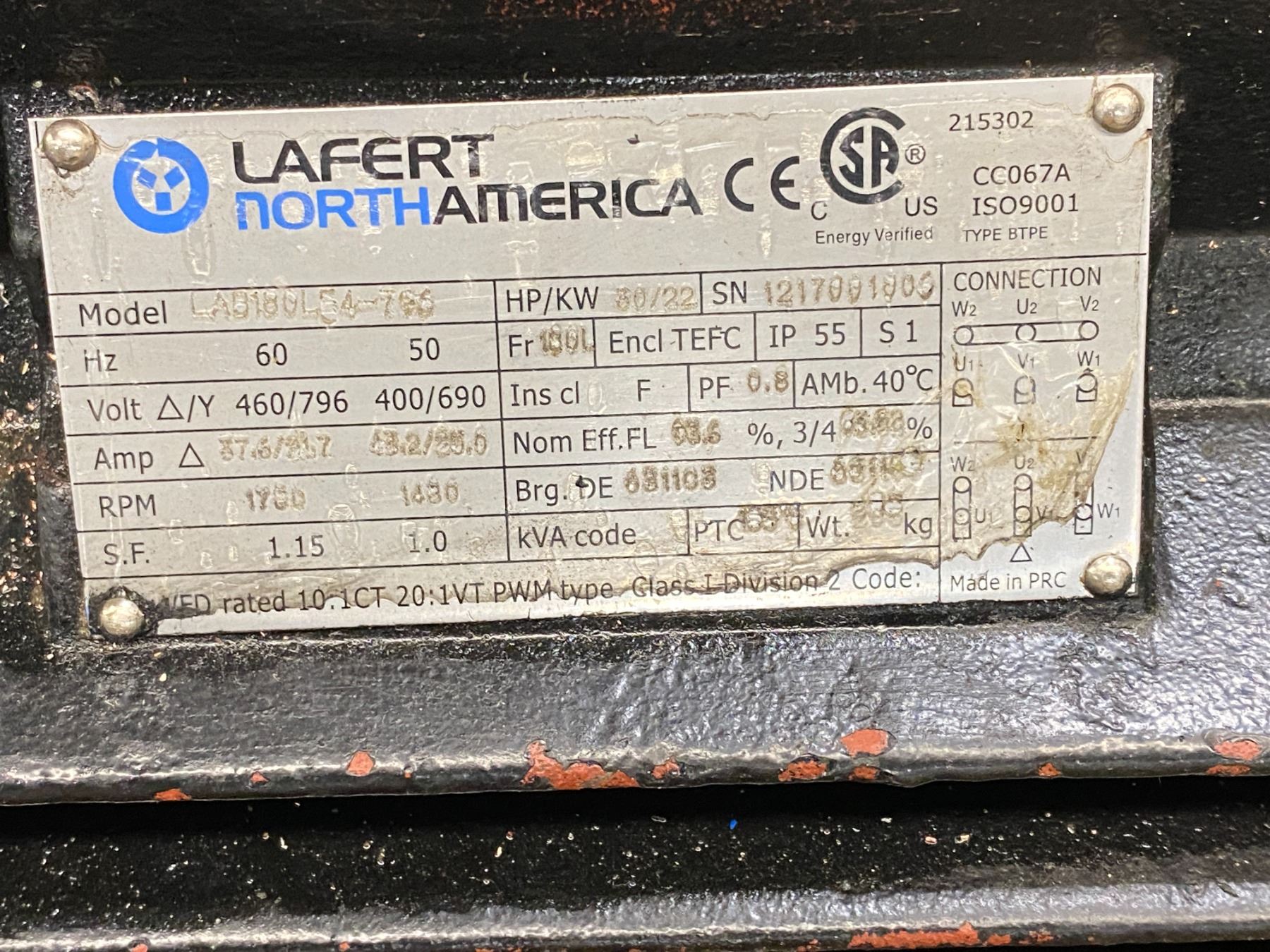 Lafert North America # LAB180L54-766 Motor