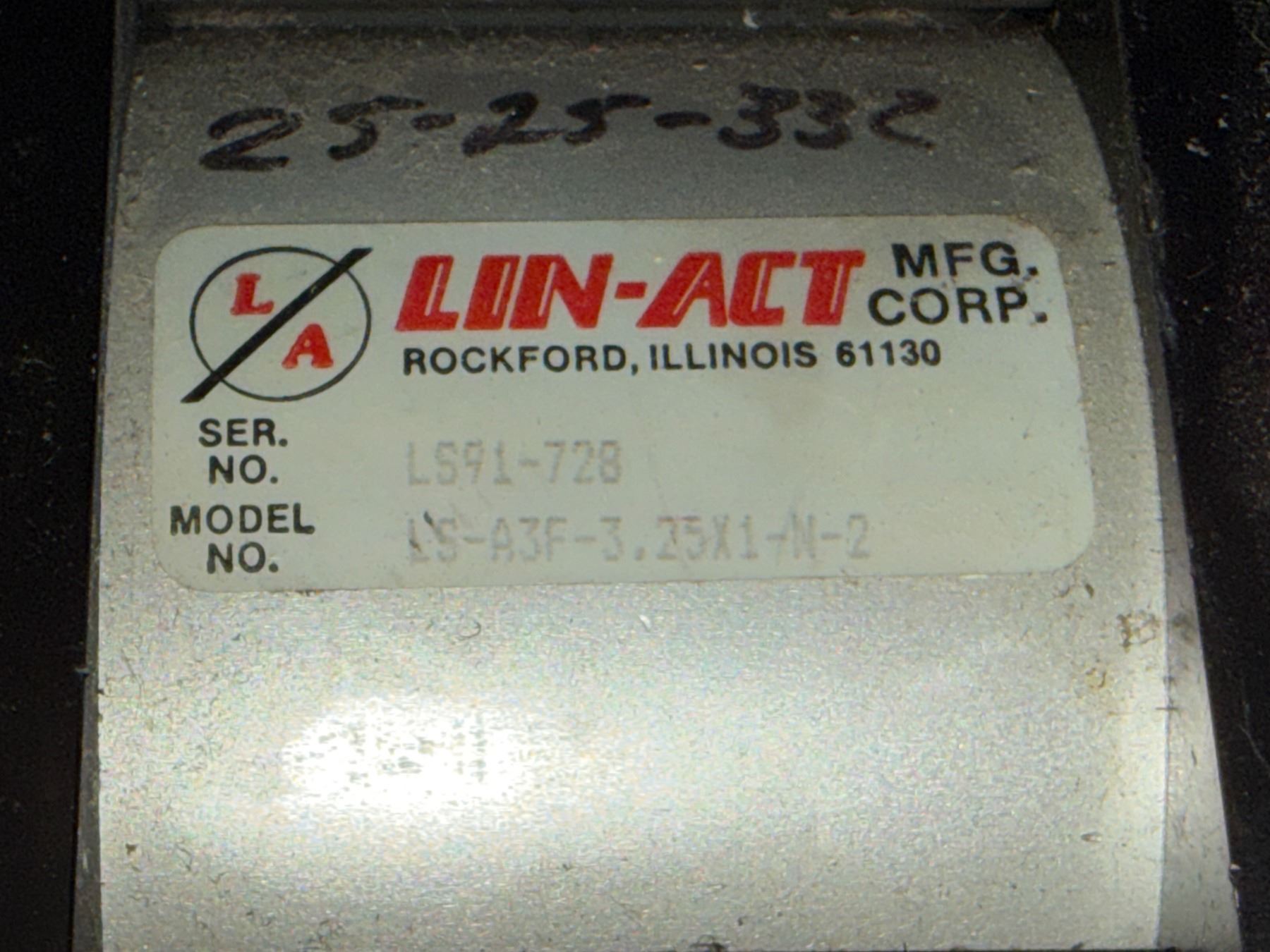 Lin-Act #LS-A3F-3.25X1-N-2 Pneumatic Cylinder