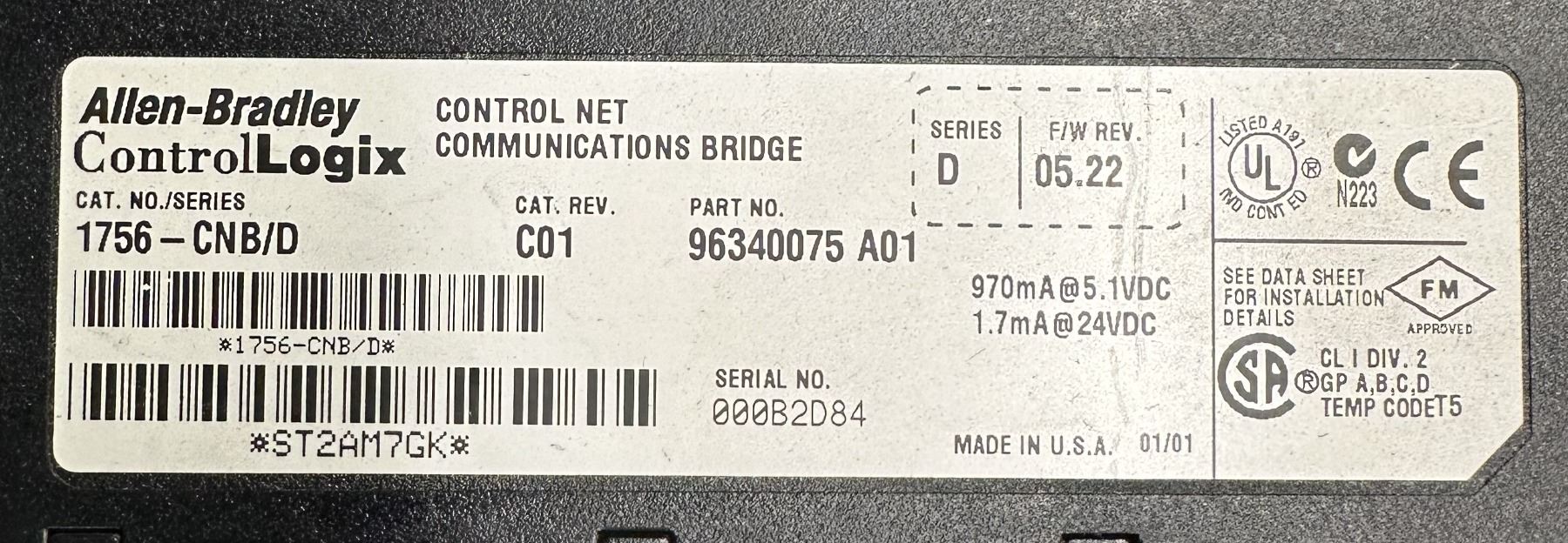 Lot of (11) Allen Bradley #1756-CNB/D Control Logix Communication Bridges