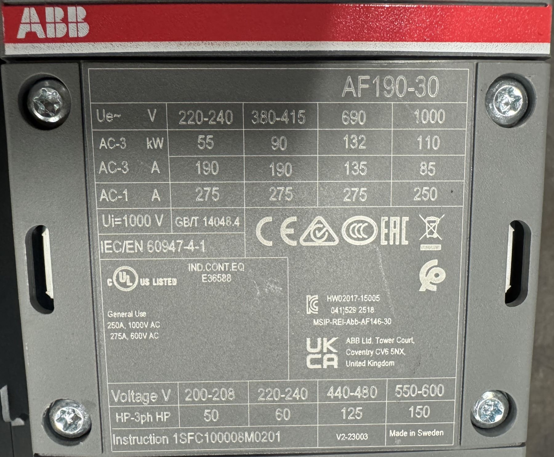 Lot of (12) ABB #AF190-30 Contactors
