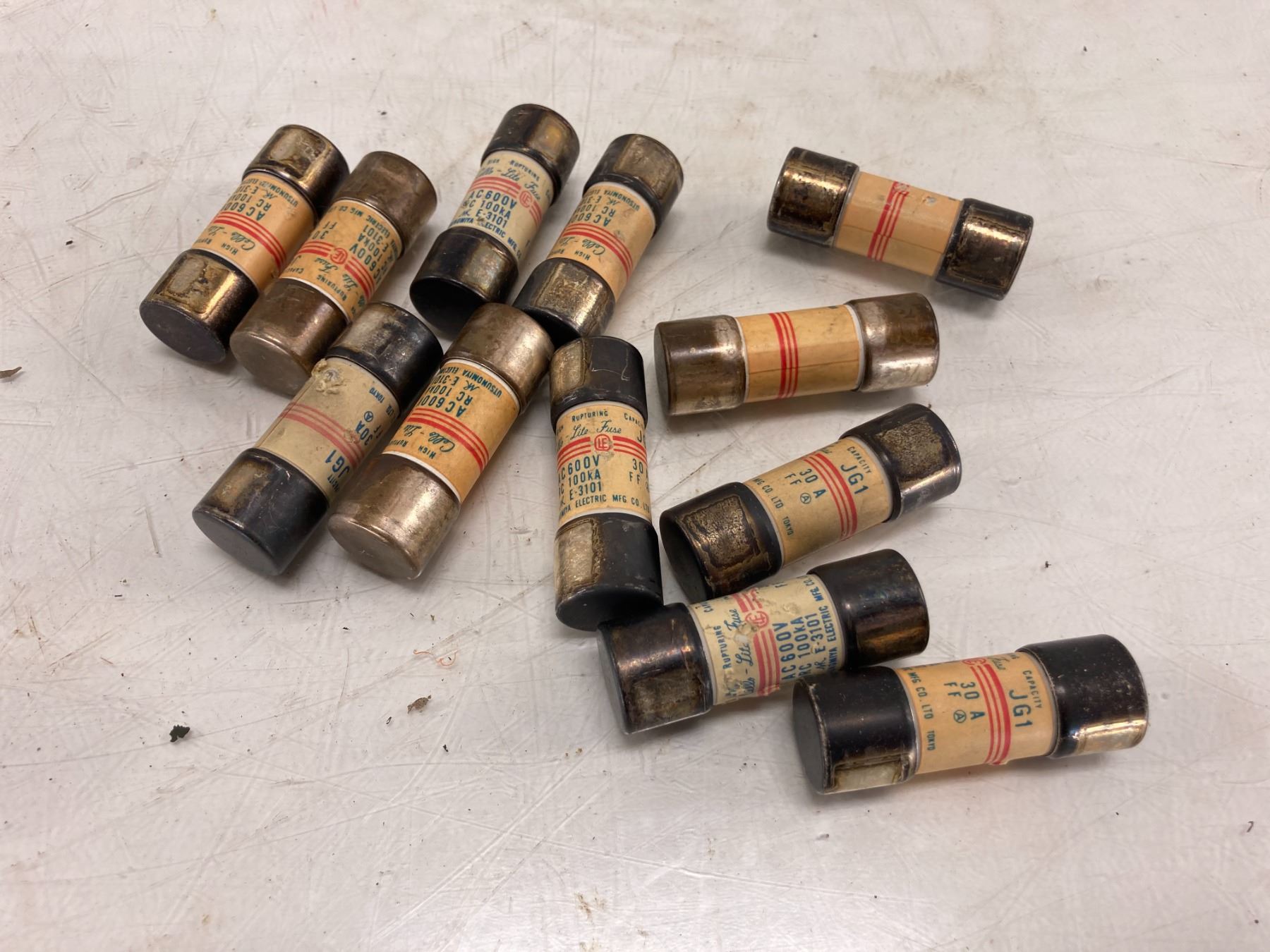 Lot of (12) Fanuc / Utsunomiya Electric, Cello-Lite Fuses, JG1, 30 Amp