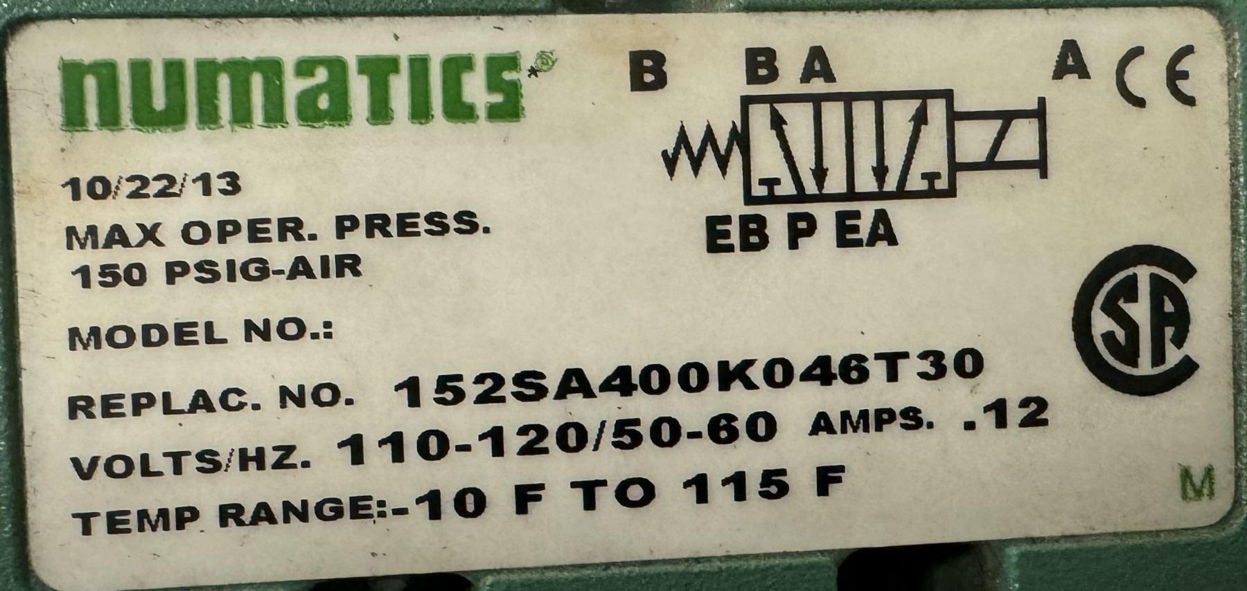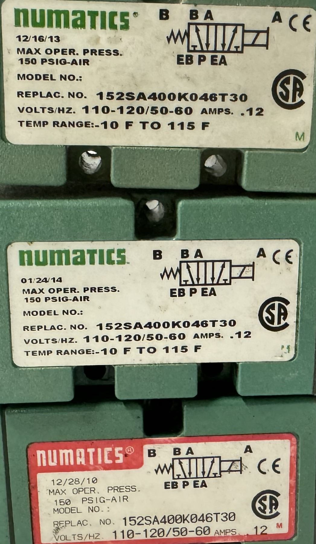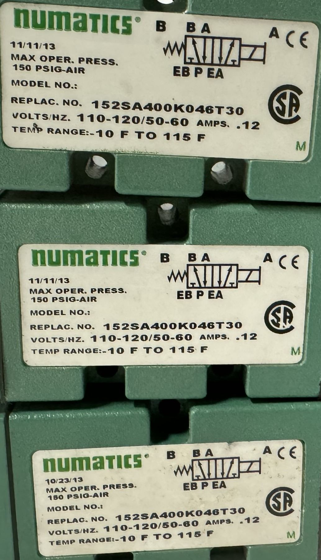 Lot of (13) Numatics #152SA400K046T30 Valves