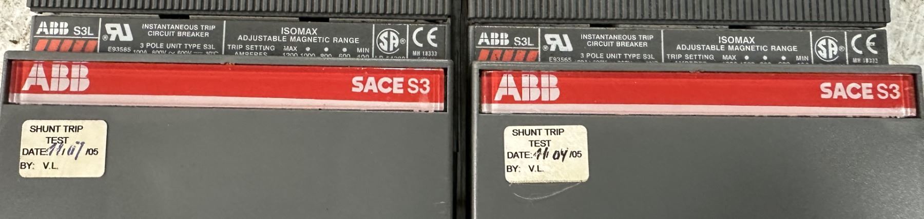 Lot of (2) ABB #SACE S3 Circuit Breakers