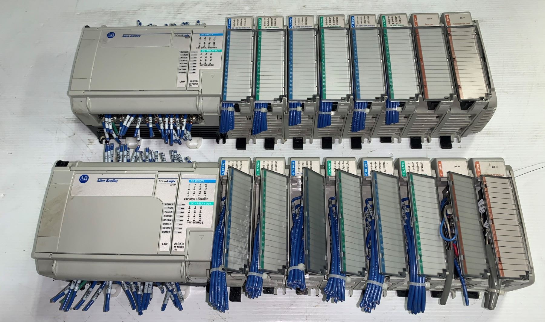 Lot of (2) Allen Bradley Racks w/MicroLogix 1500 Controller & Modules as Pictured