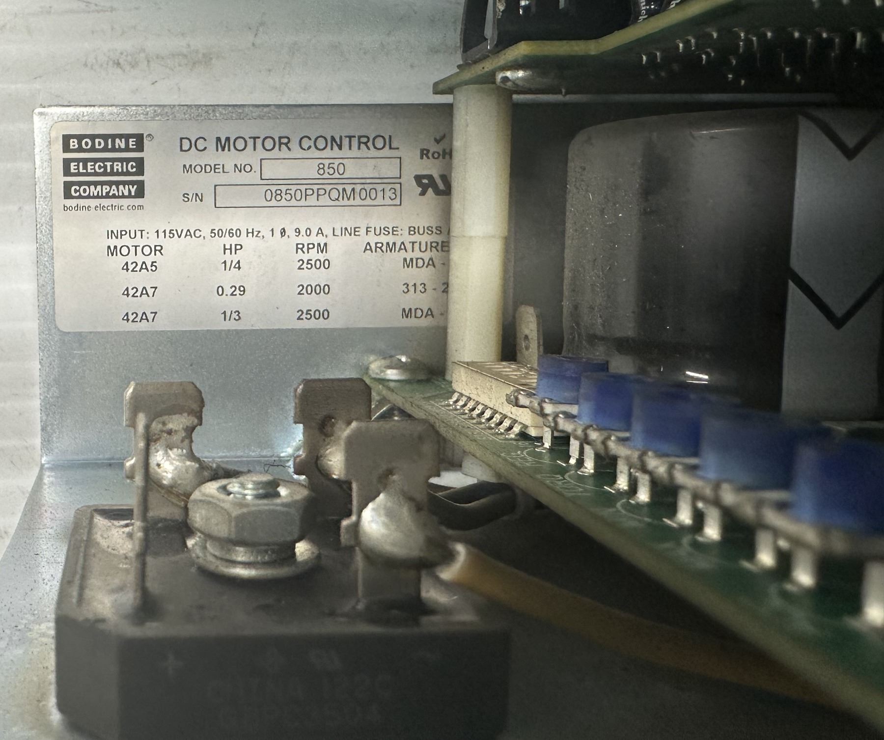 Lot of (2) Bodine Electric Company #850 DC Motor Controllers