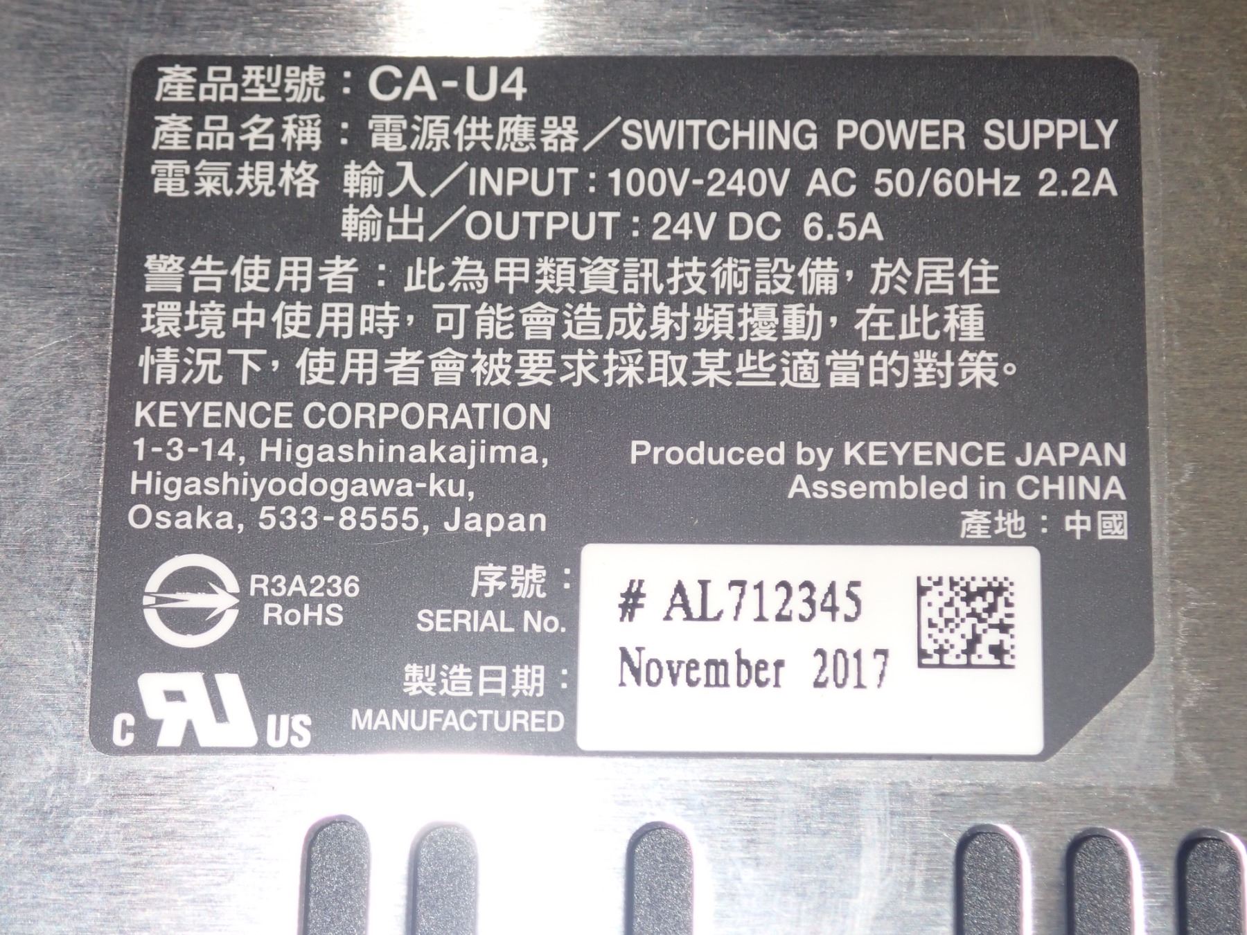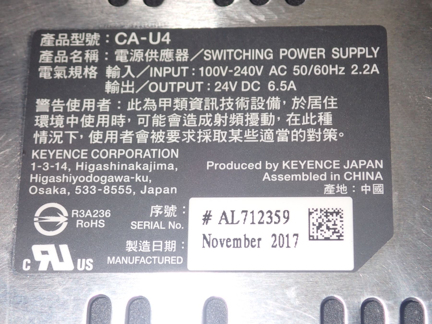 Lot of (2) Keyence #CA-U4 Power Supplies