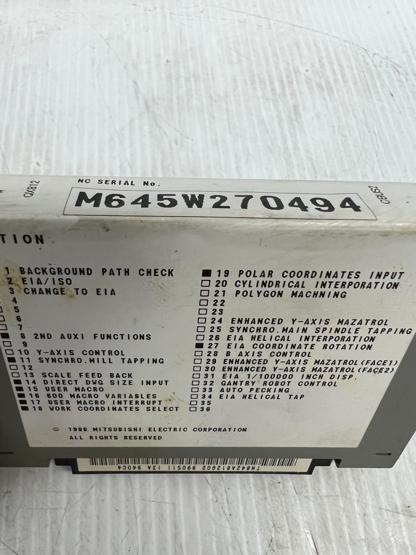2. Surplus Inventory – This means the parts were being stored in a tool crib or storage facility. No information is known if and when the parts were removed from a machine and for what reason. All parts are believed to be in good working condition. Any known defects will be called out in the description section. You may come to our facility at any time during business hours to inspect the parts. As always, the parts are being sold “AS IS” without returns.