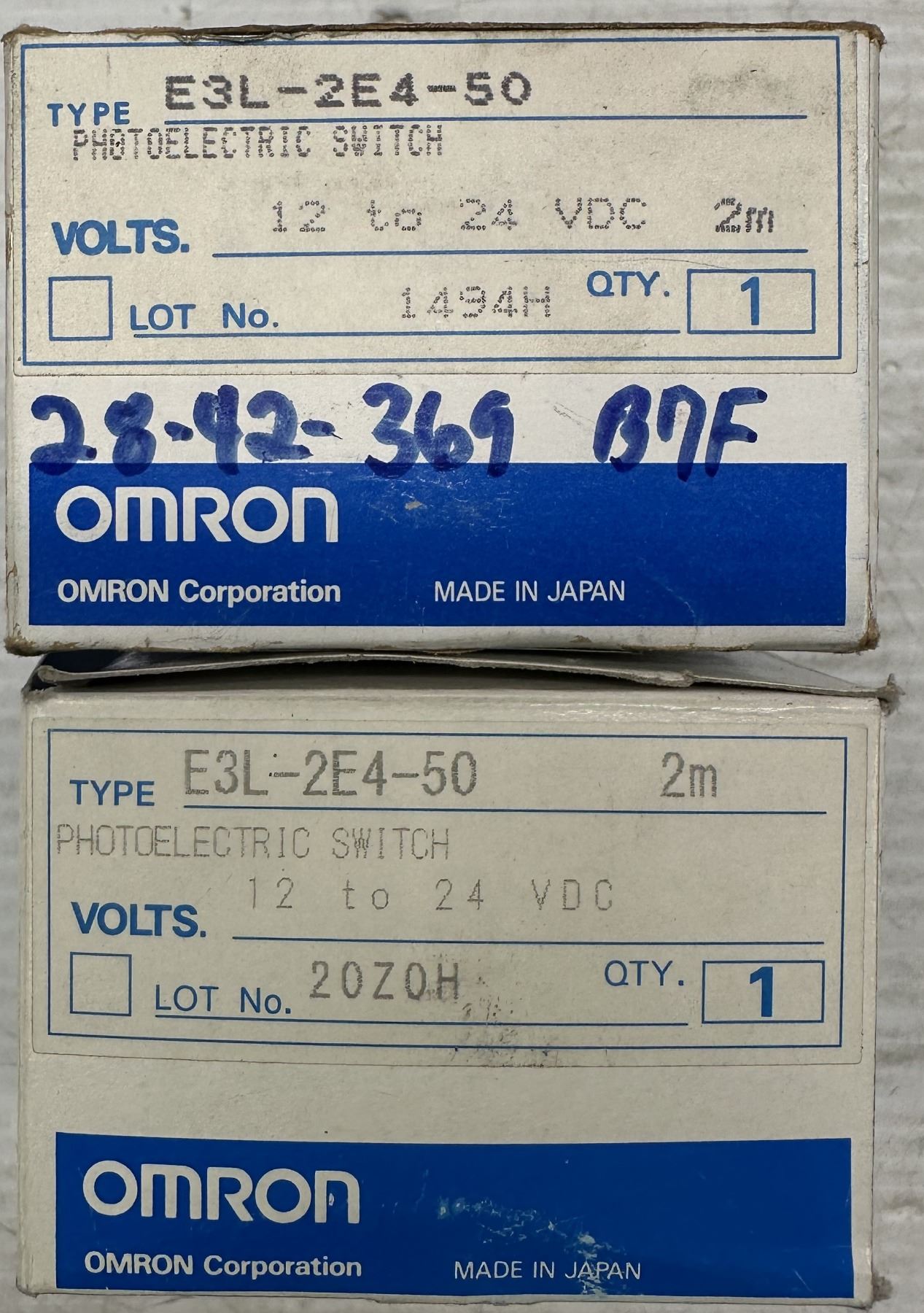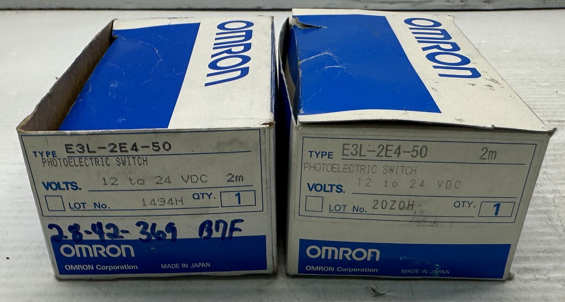 Lot of (2) Omron #E3L-2E4-50 Photoelectric Switches
