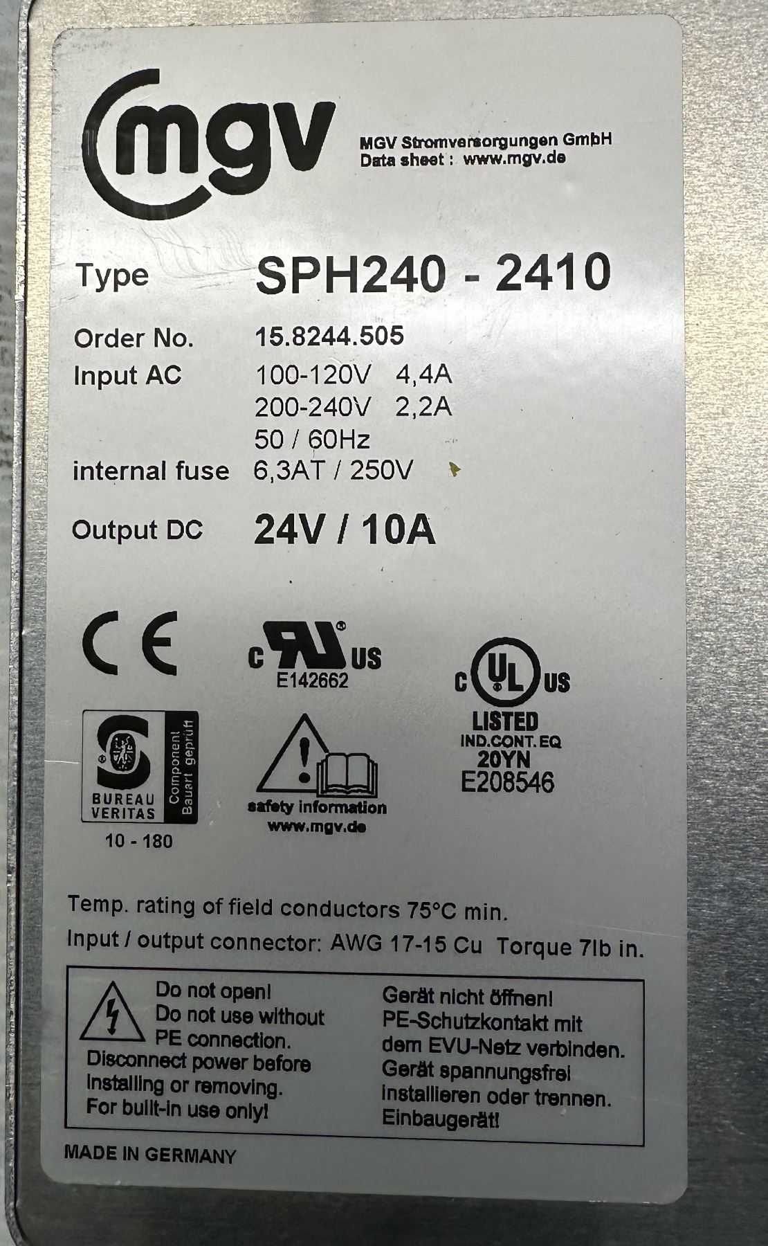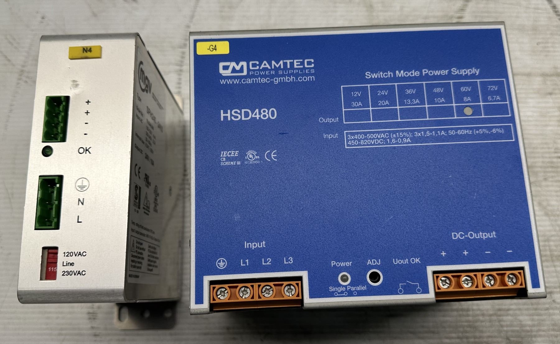 Lot of (2) Power Supplies Camtec #3041055009CA Type HSD04801.60T & mgv #SPH240-2410