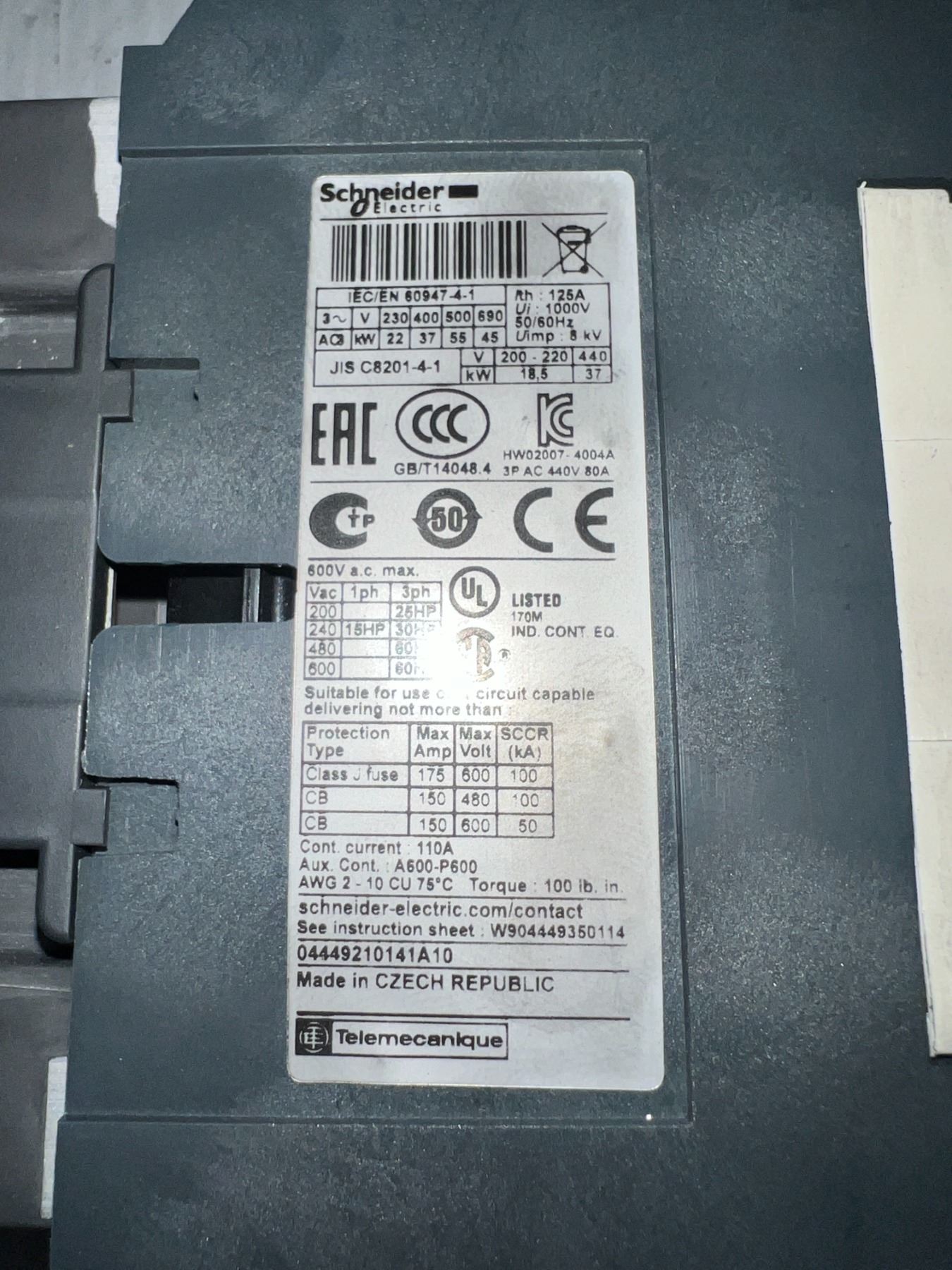 Lot of (2) Schneider Electric #LC1D80 & #LCD115 Contactors