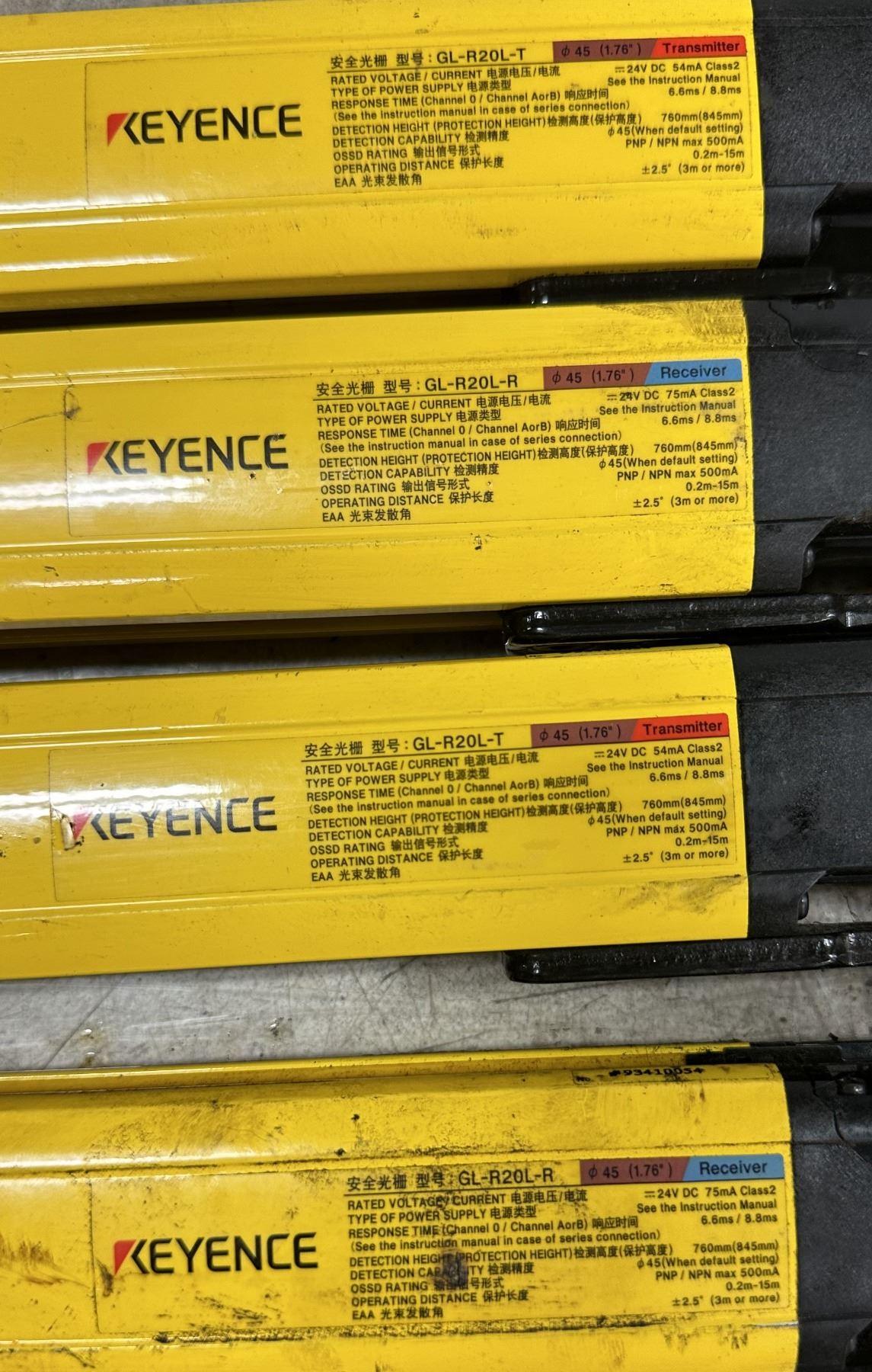 Lot of (2) Sets of Keyence #GL-R20L Light Curtains Transmitter & Receiver