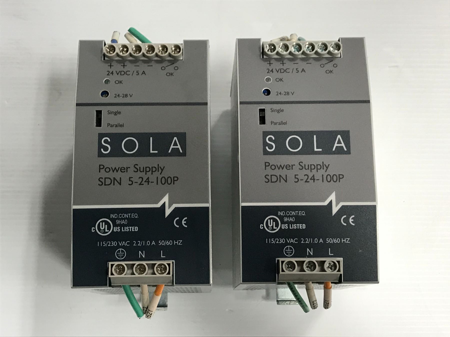 Lot of (2) Sola #SDN 5-24-100P Power Supply