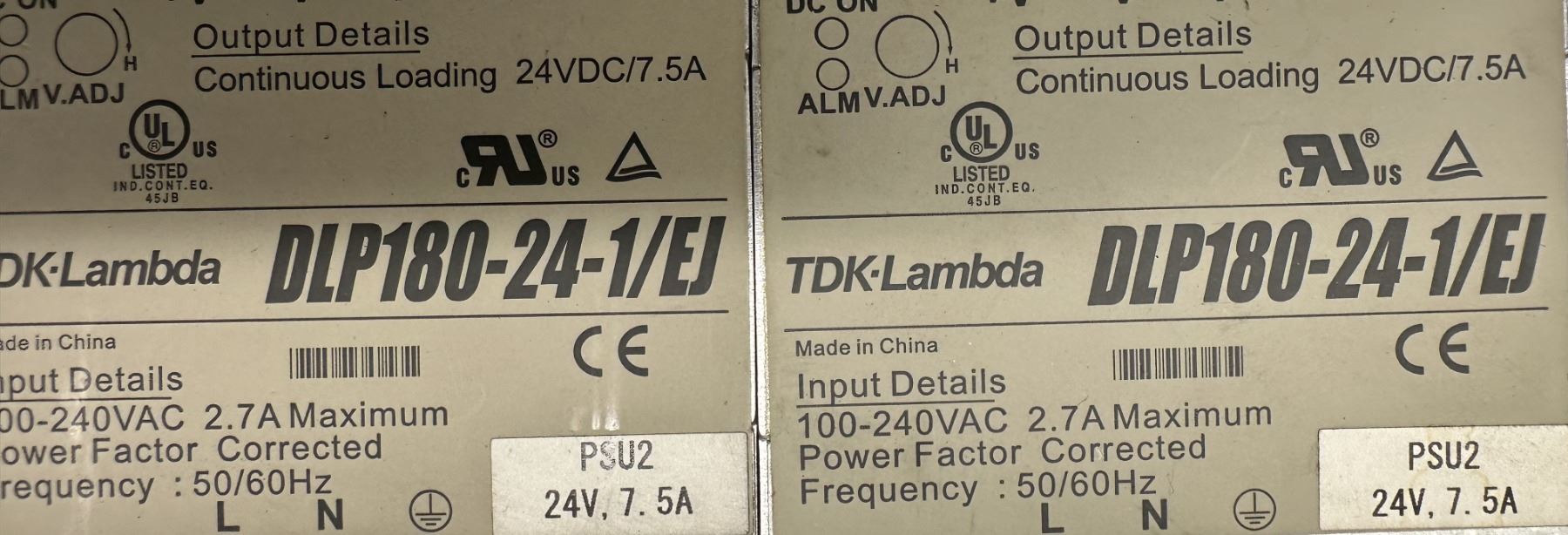 Lot of (2) TDK-Lambda #DLP180-24-1/2EJ Power Supplies