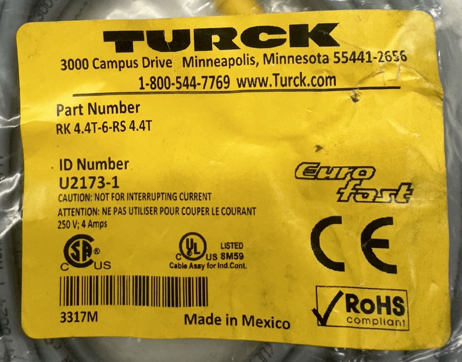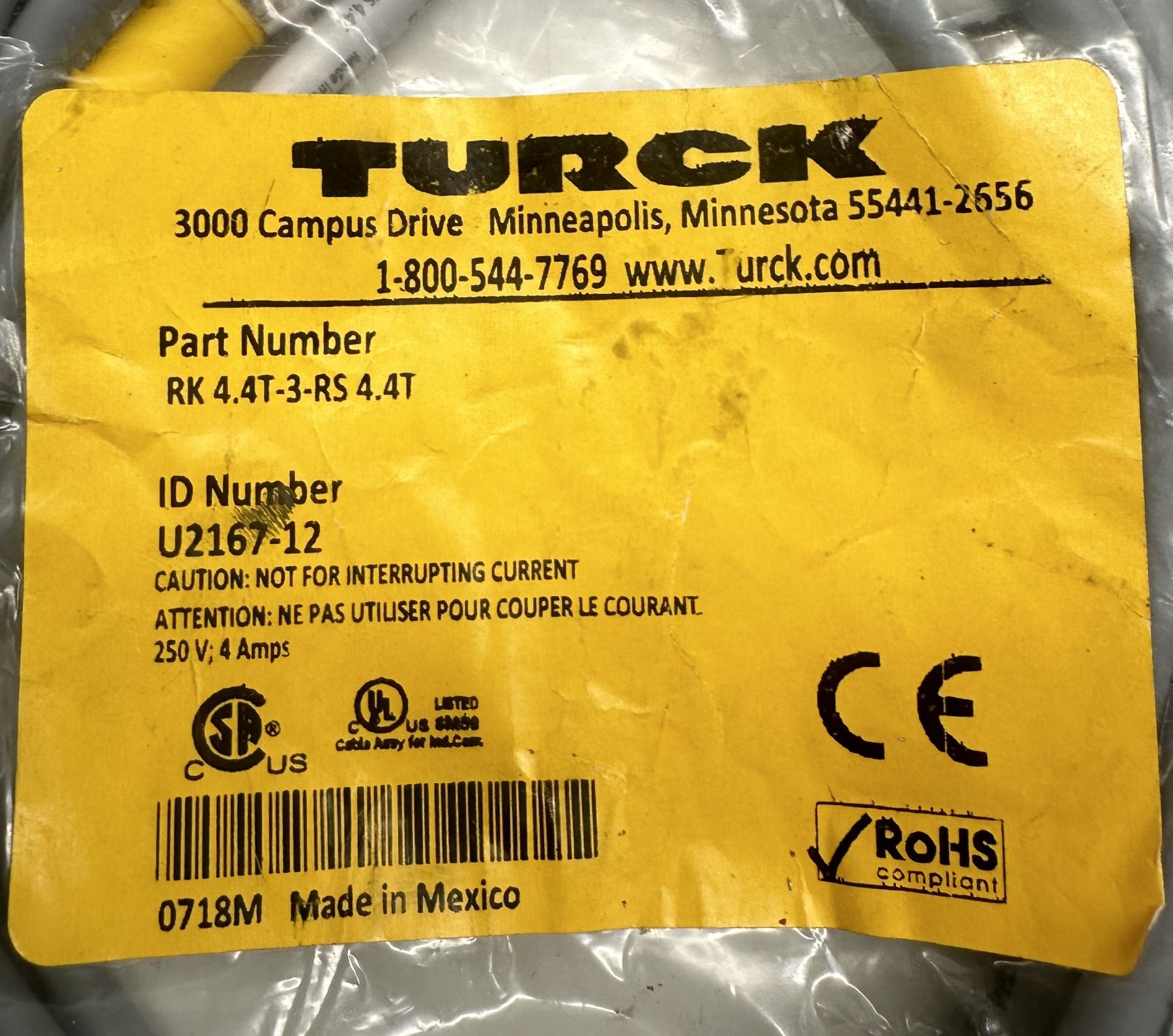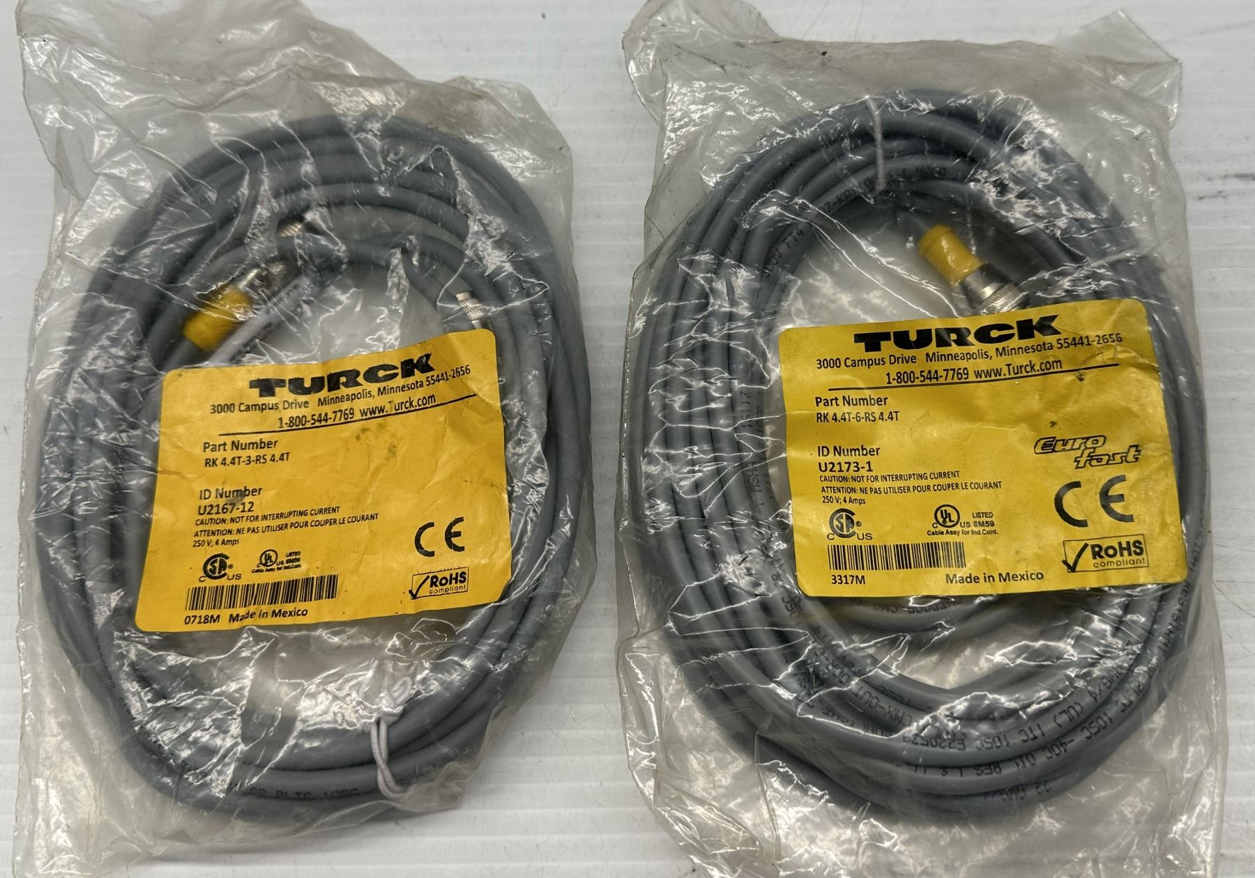 Lot of (2) Turck Cables #RK 4.4T-3-RS 4.4T & #RK 4.4T-6-RS 4.4T