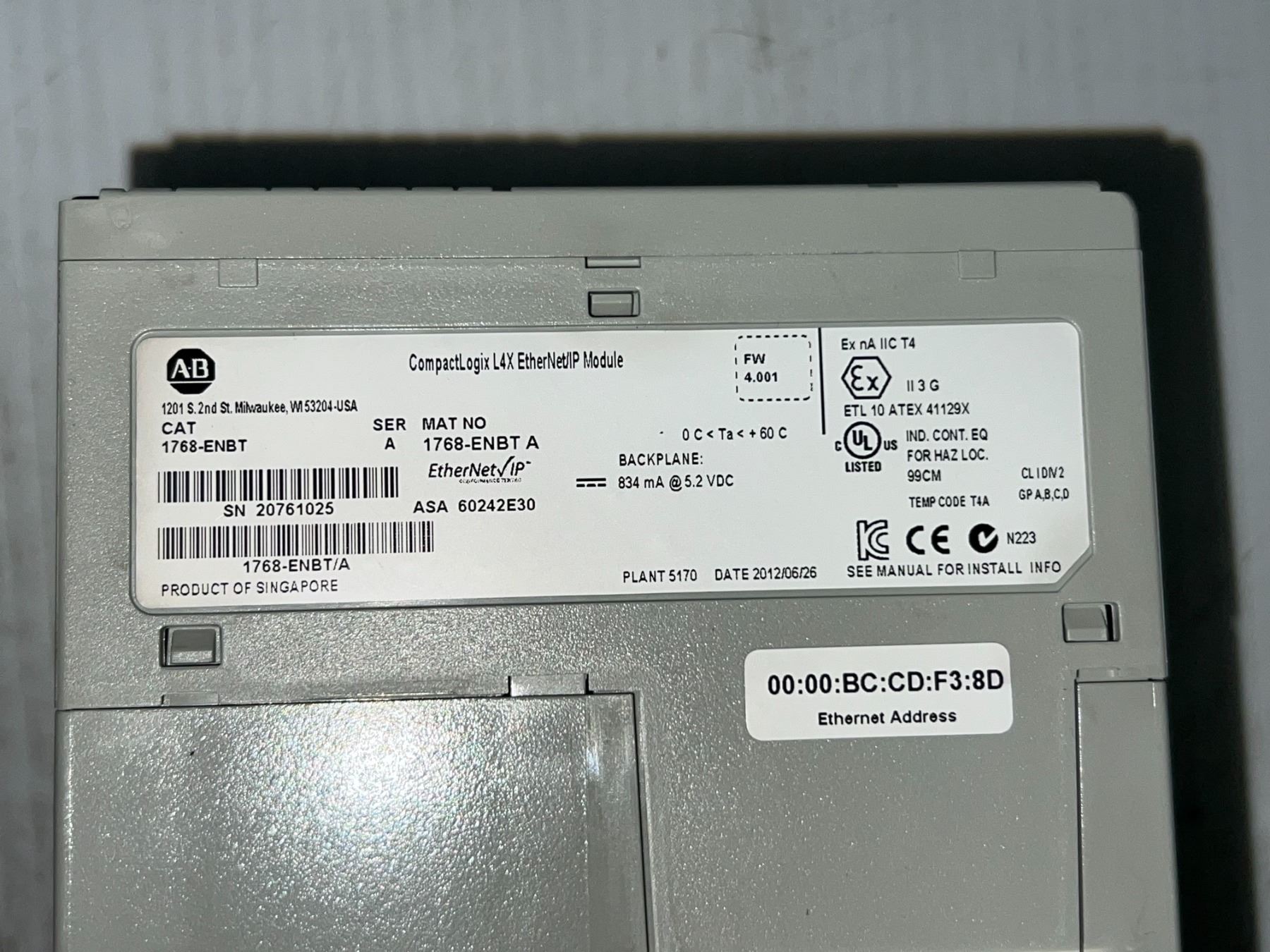 Lot of (3) Allen-Bradley #1768-ENBT CompactLogix L4X Ethernet/IP Modules