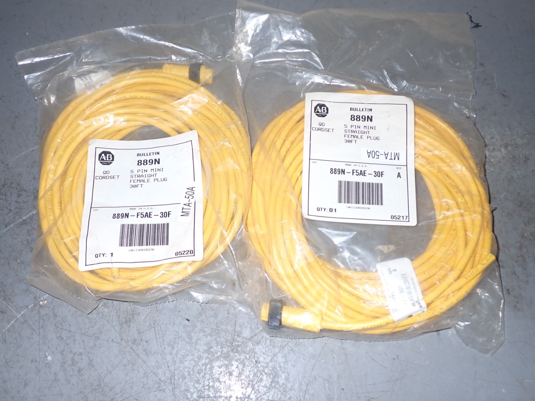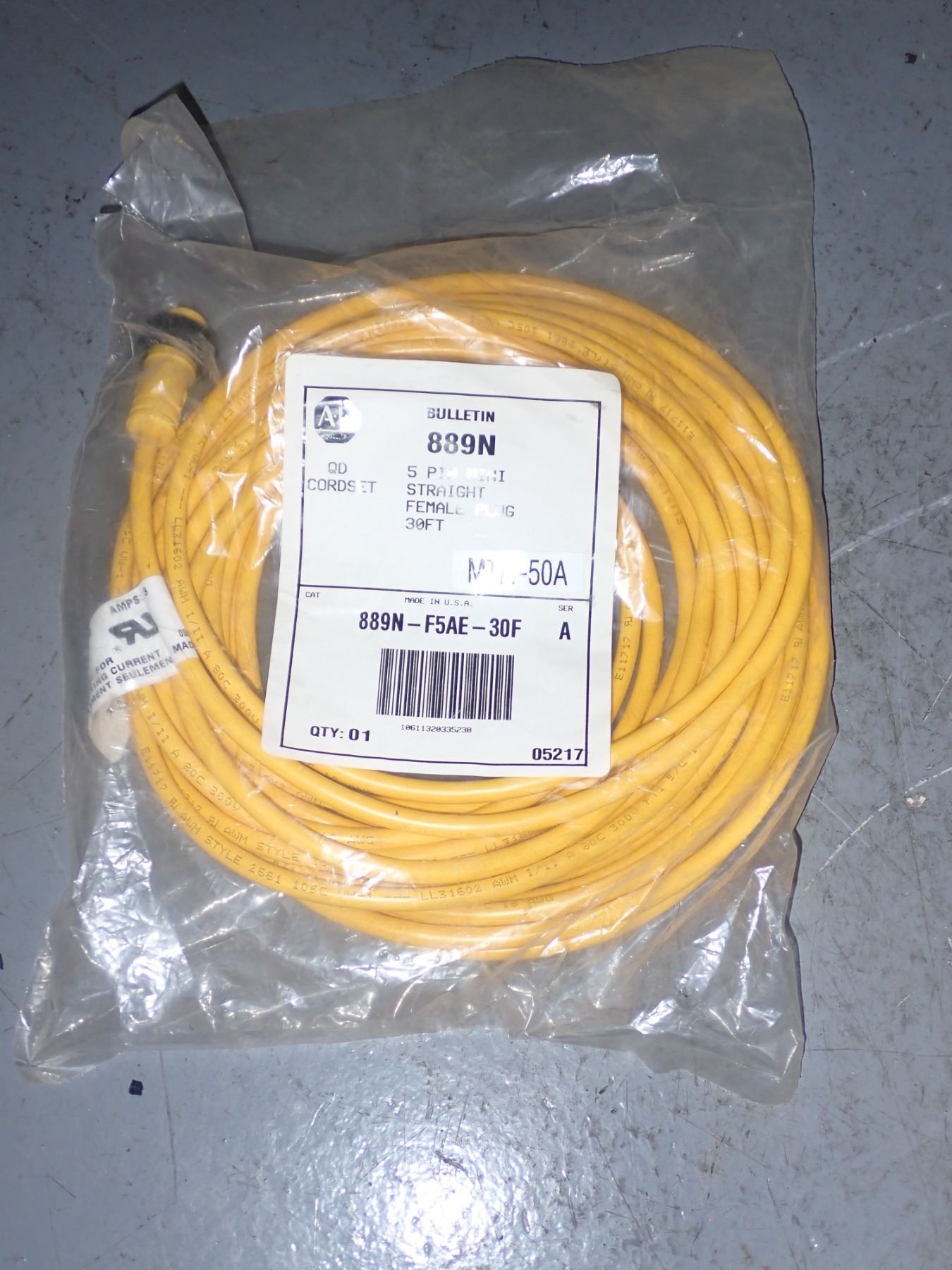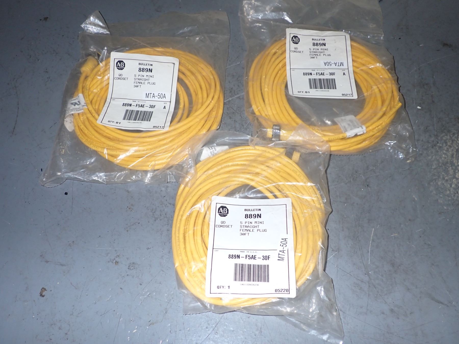 Lot of (3) Allen Bradley #889N-F5AE-30F QD Cordset