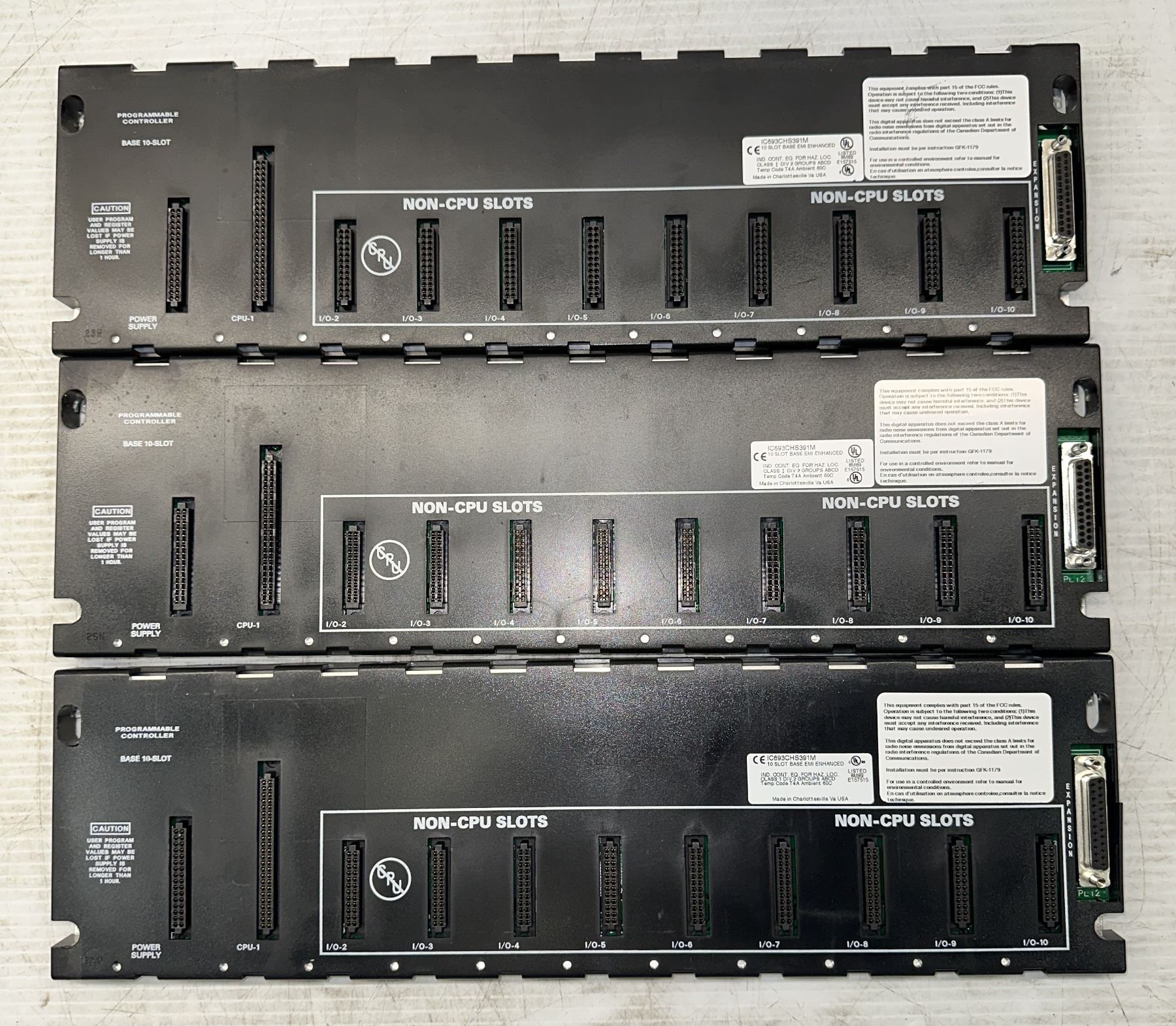 Lot of (3) GE Fanuc #IC693CHS391M 10 Slot Base EMI Enhanced
