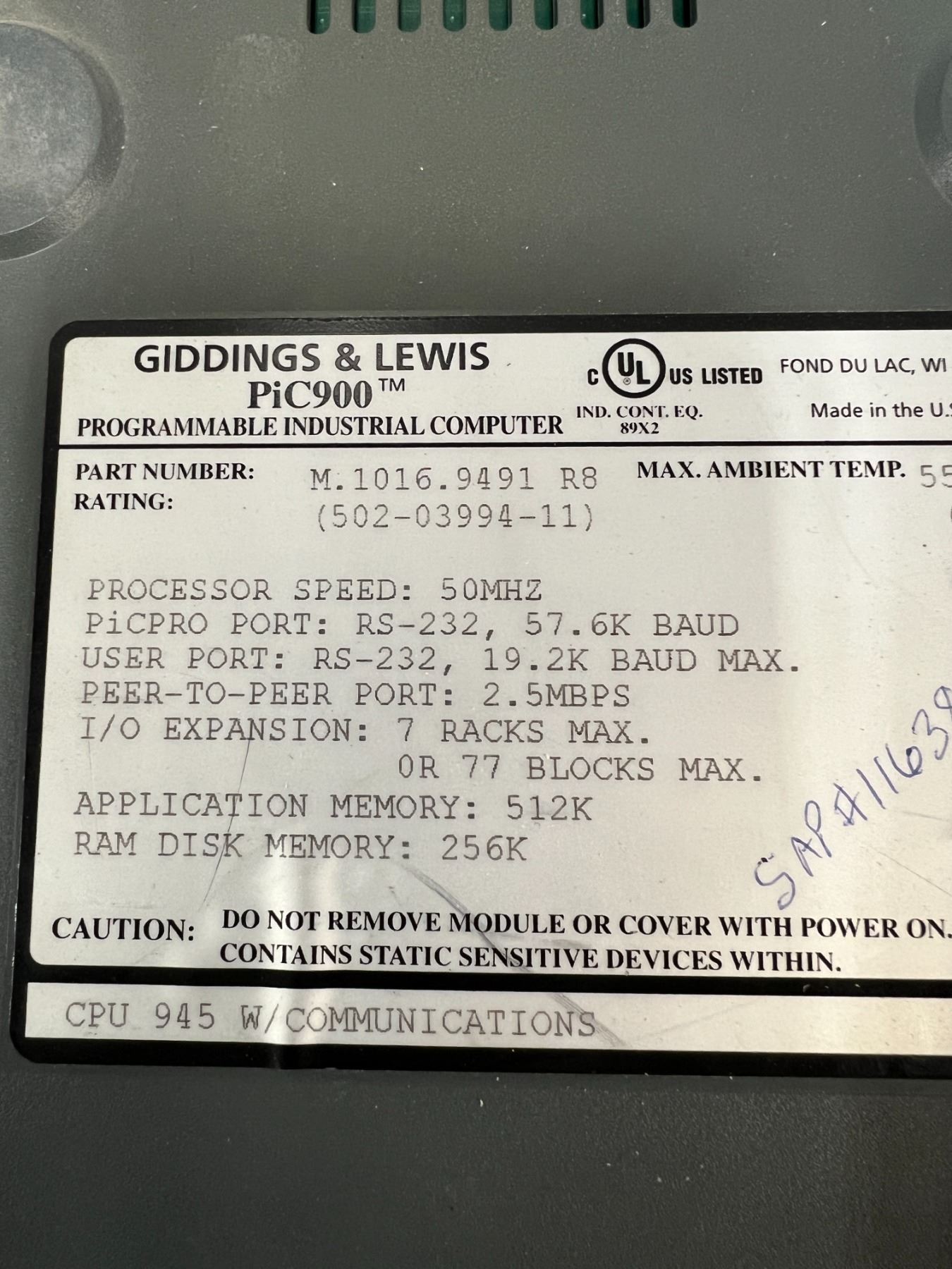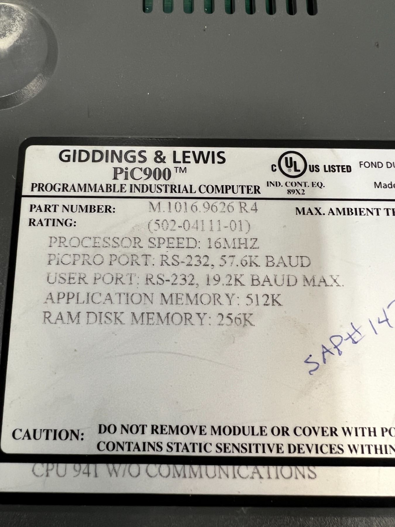 Lot of (3) Giddings & Lewis CPU Modules