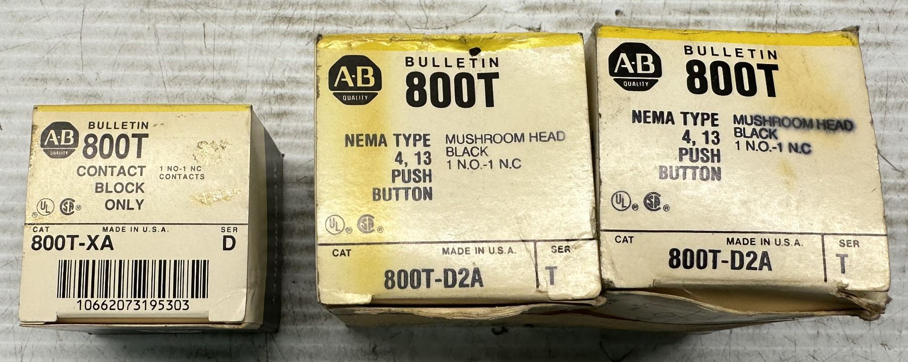 Lot of (3) Misc. Allen Bradley Mushroom Heads & Contact Block