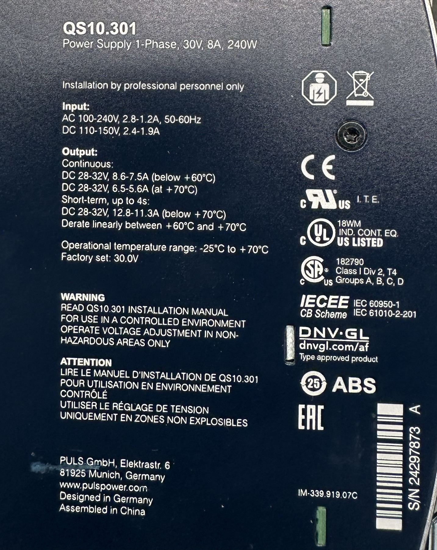 Lot of (3) Puls Power Supplies #QS10.301 / #UB10.241 / #UZK12.071