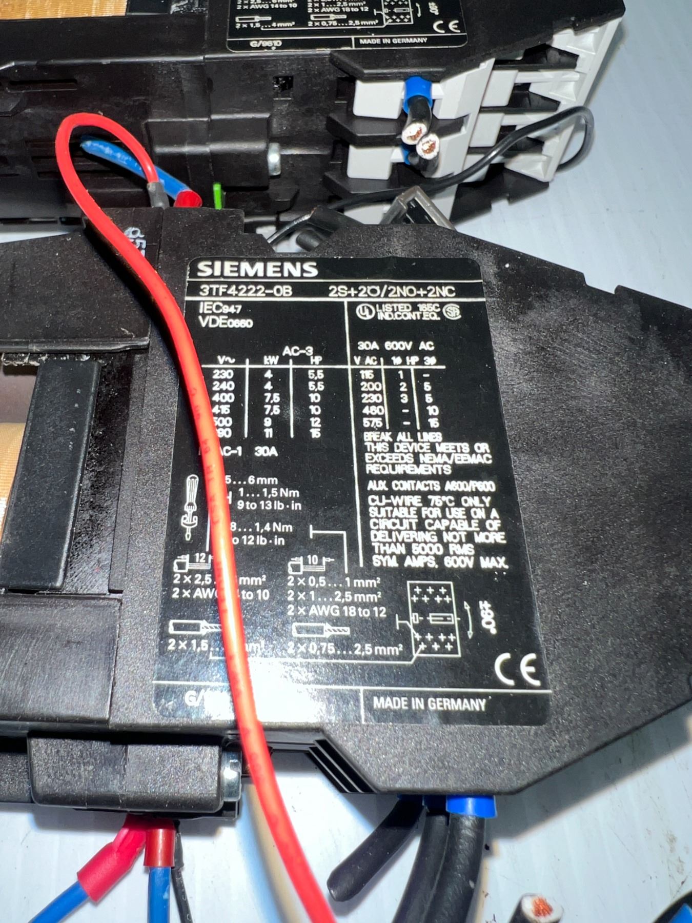 Lot of (3) Siemens #3TF4222-0B Contactors
