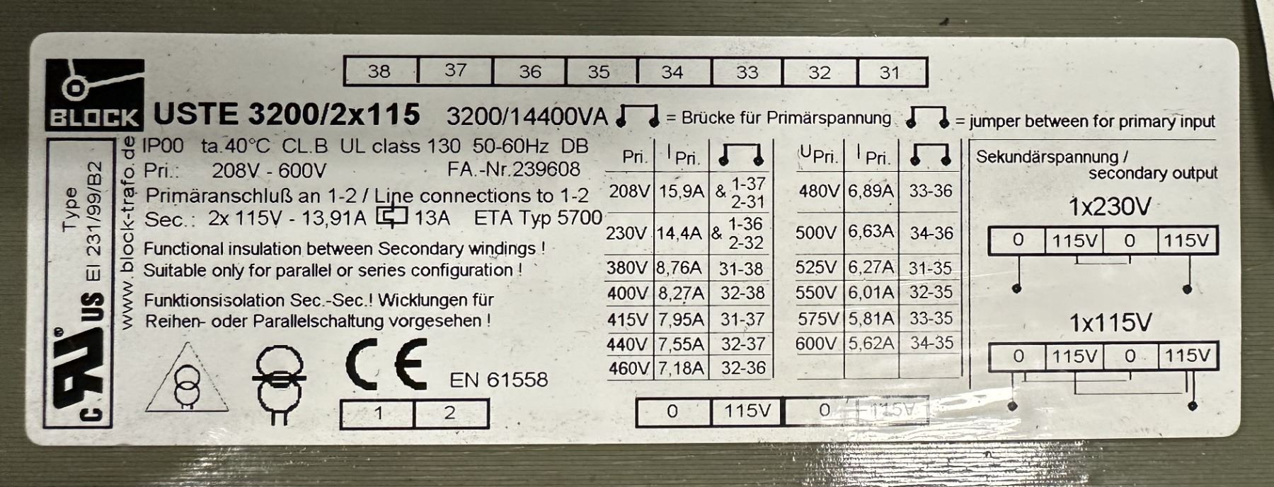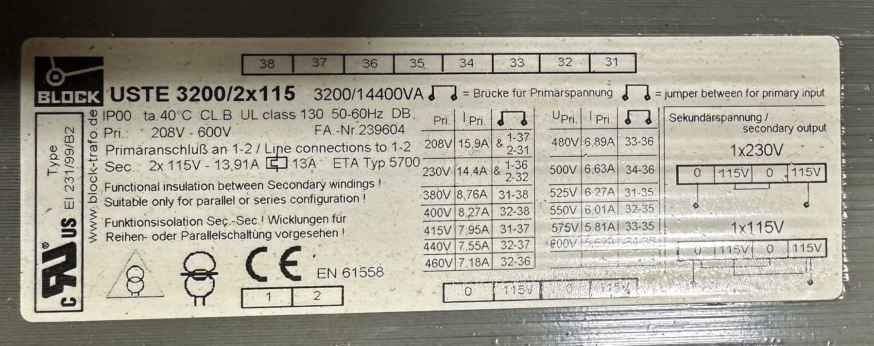 Lot of (3) Transformers 1-#B 1210068 & 2-#USTE 3200/2x115