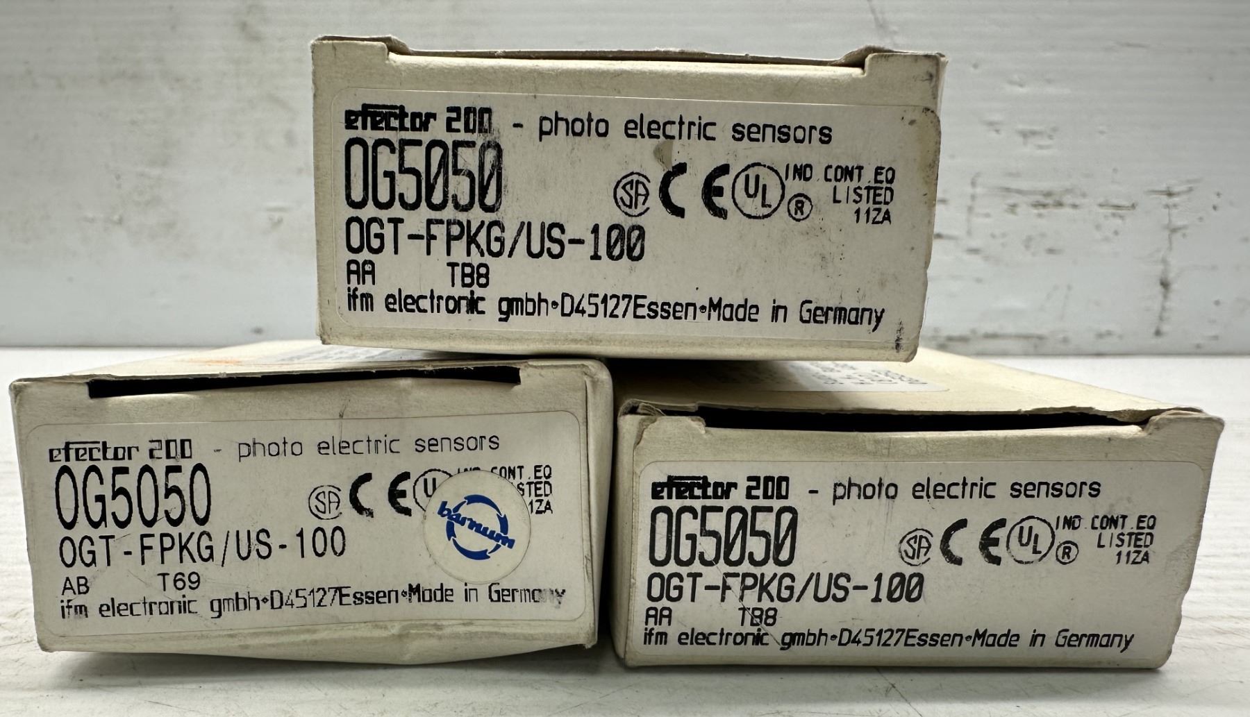 Lot of (3) ifm #OG5050 Photo Electric Sensors