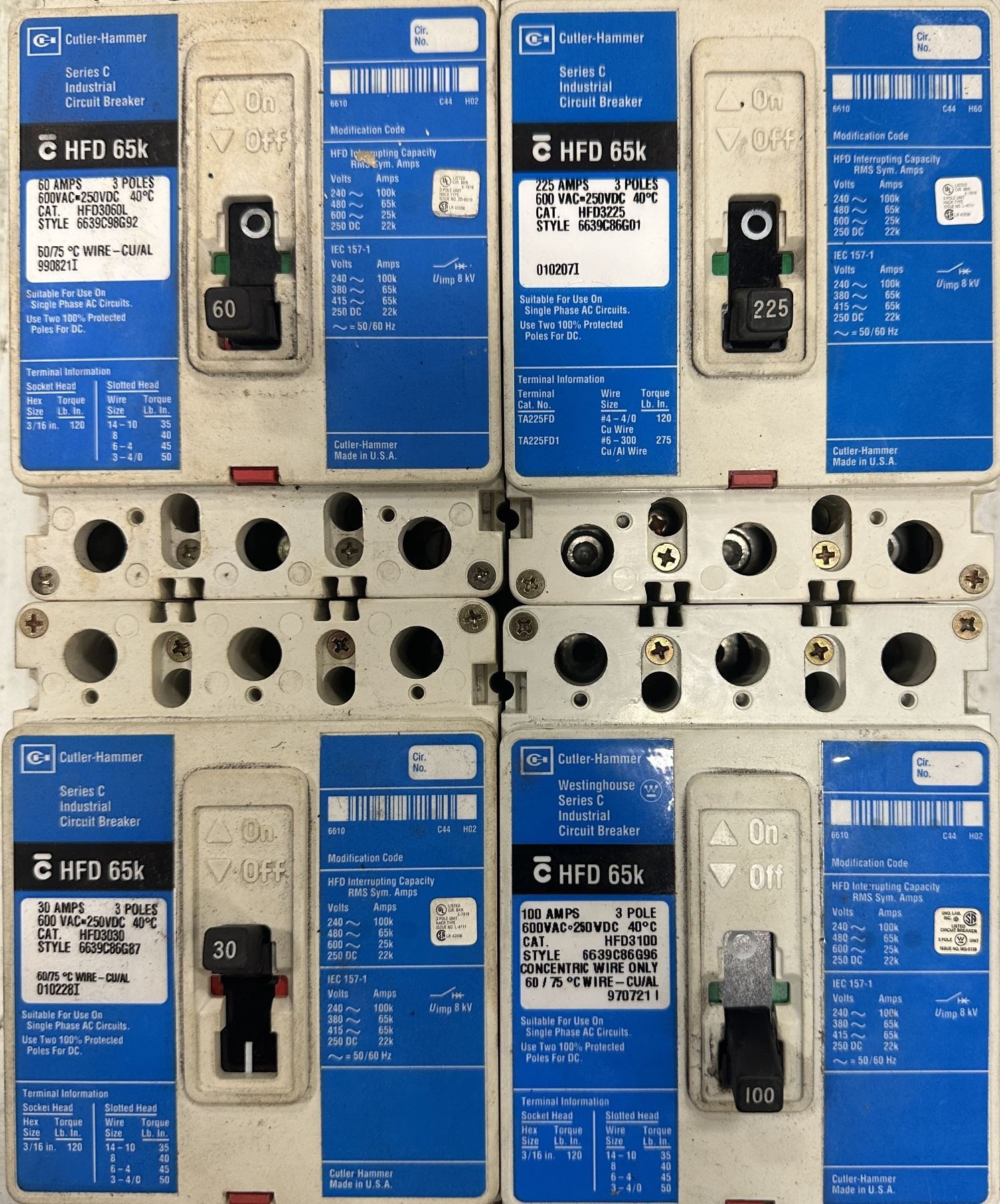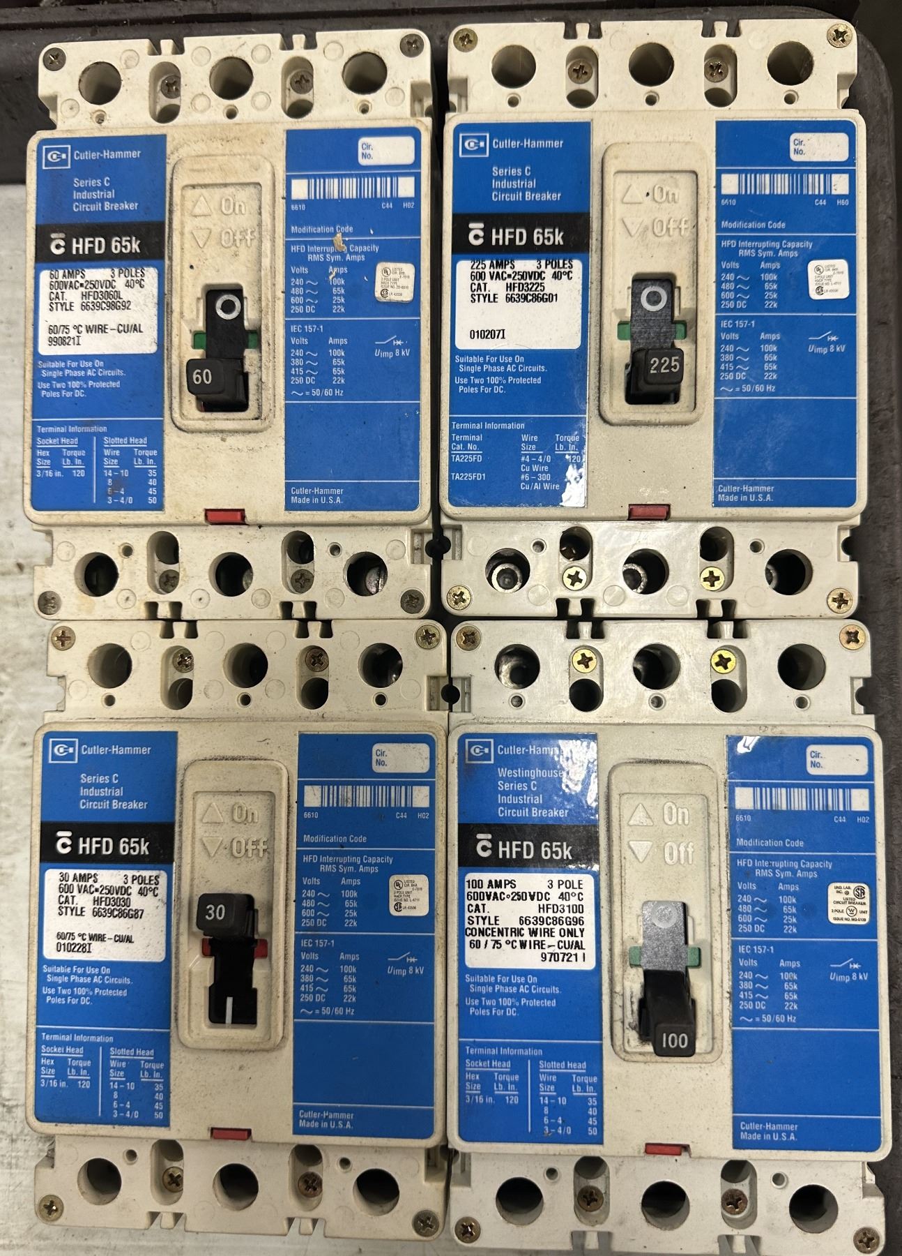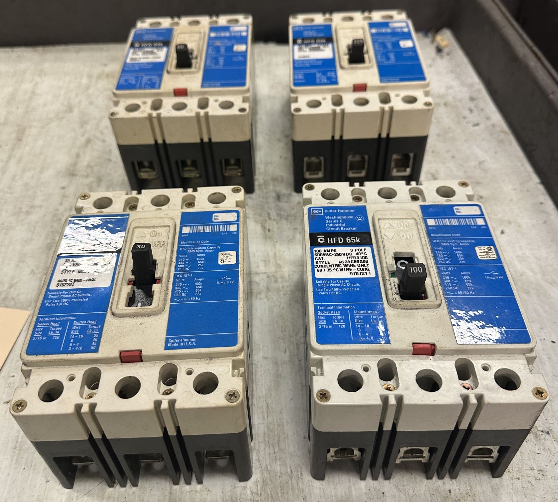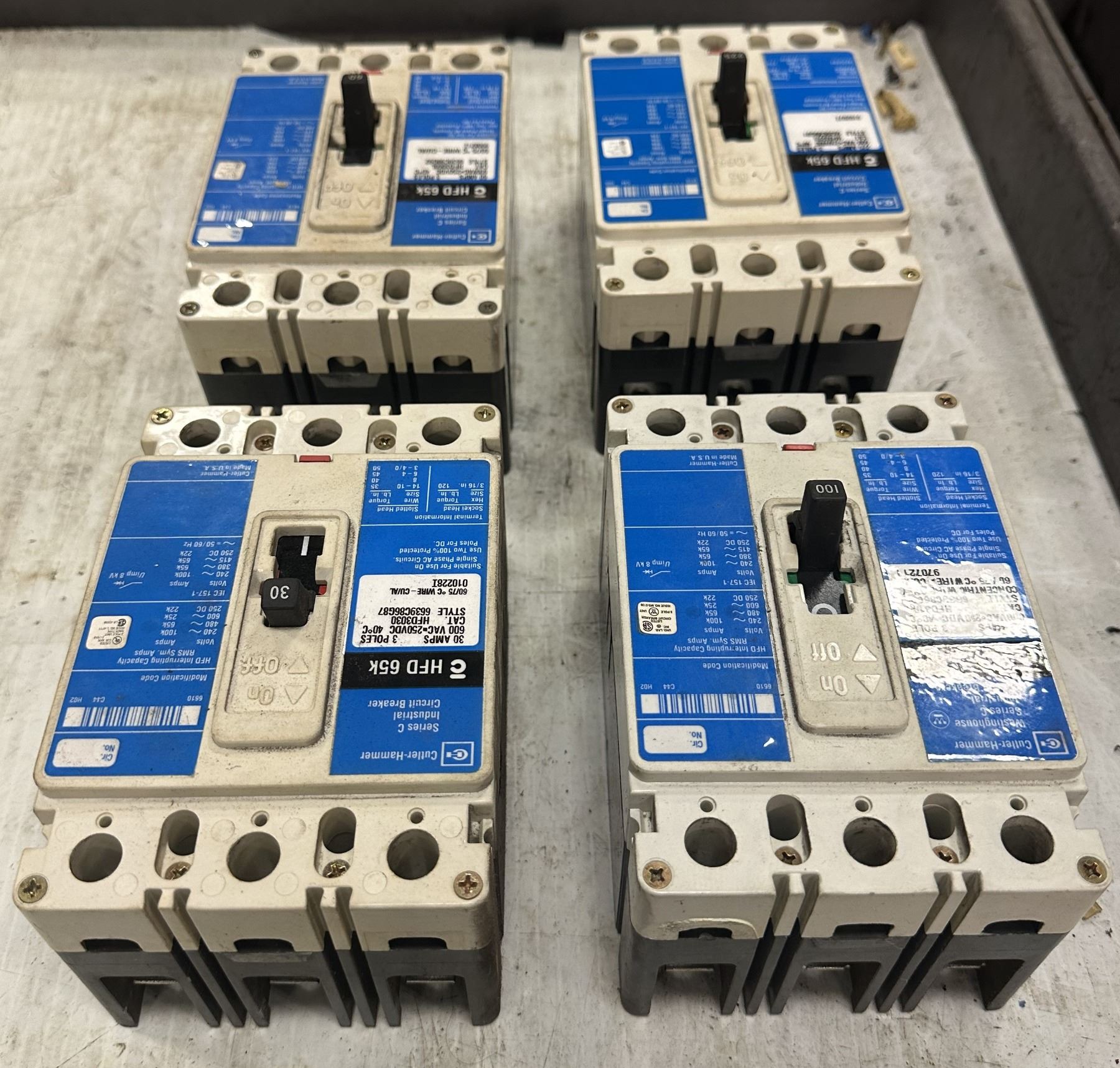 Lot of (4) Cutler-Hammer #c HFD 65k Industrial Circuit Breakers