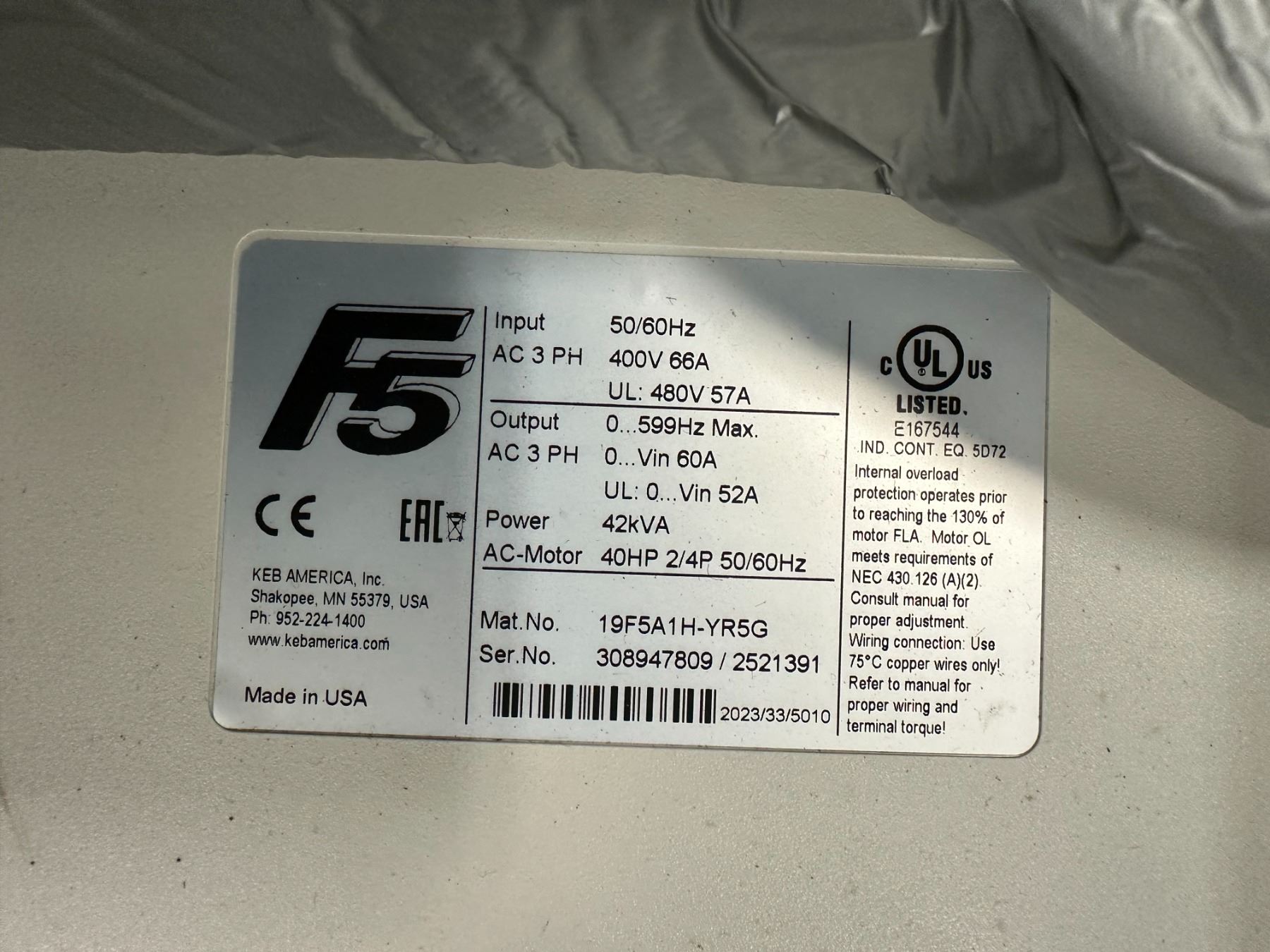 Lot of (4) Keb Variable Frequency Drives