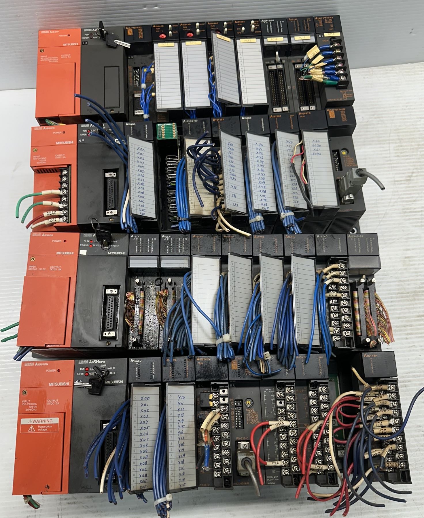 Lot of (4) Misc. Mitsubishi Racks w/Power Supplies & Modules as Pictured