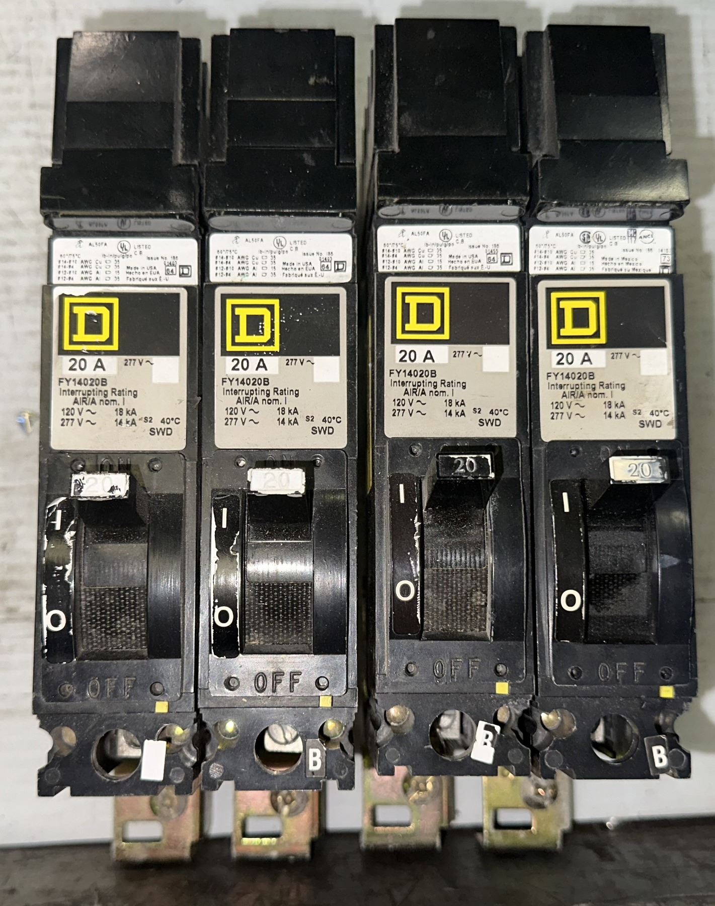 Lot of (4) Square D #FY14020B Circuit Breakers