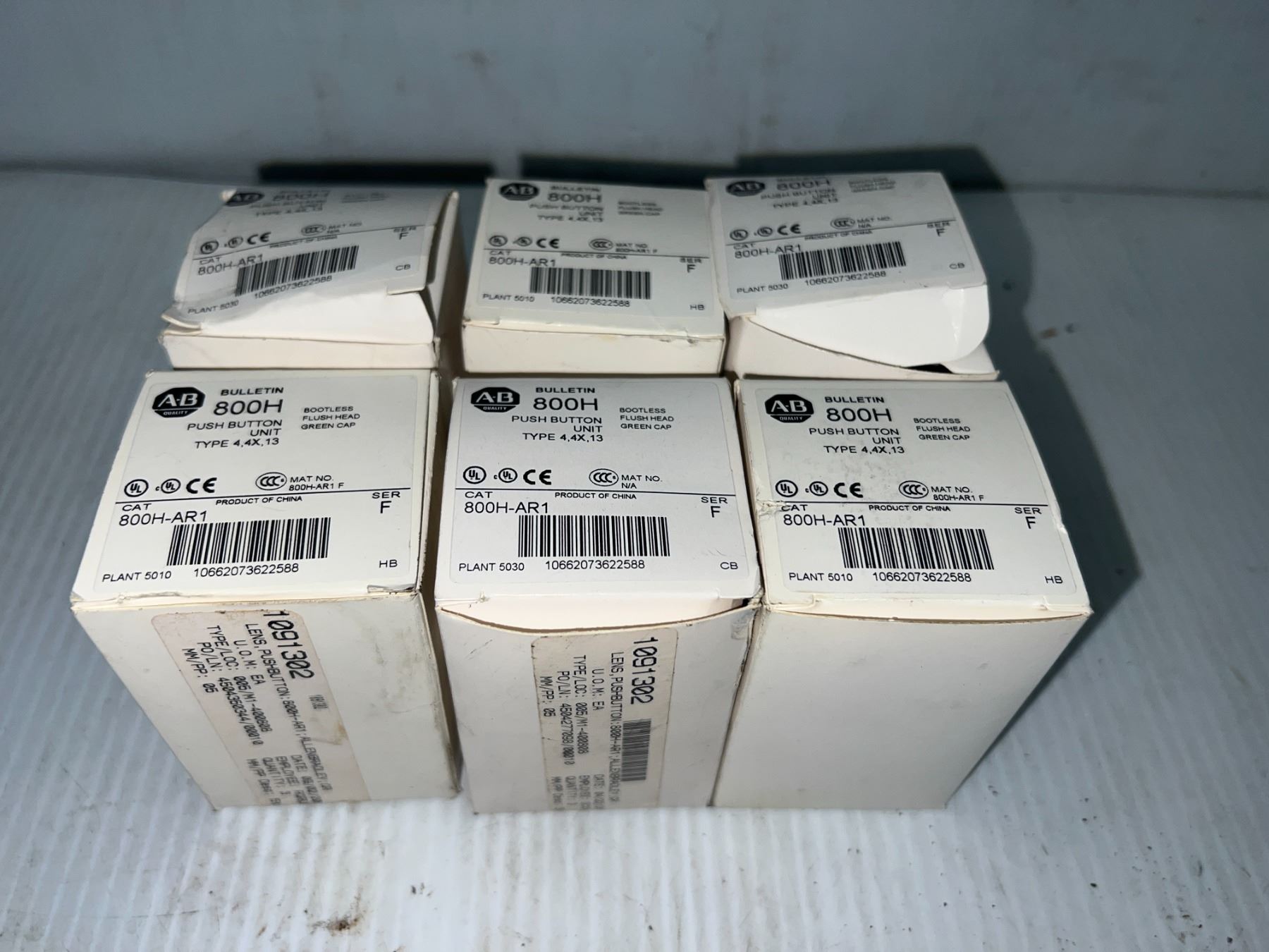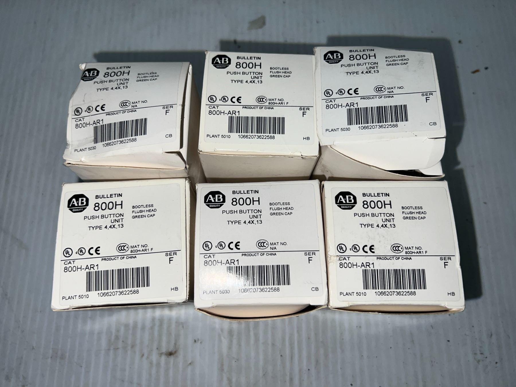 Lot of (6) Allen-Bradley #800H-AR1 Push Button Units