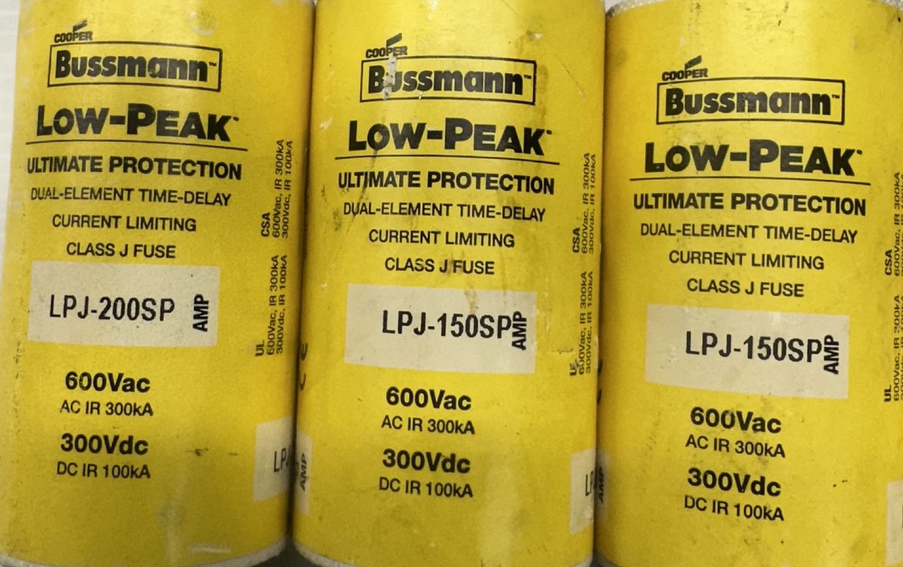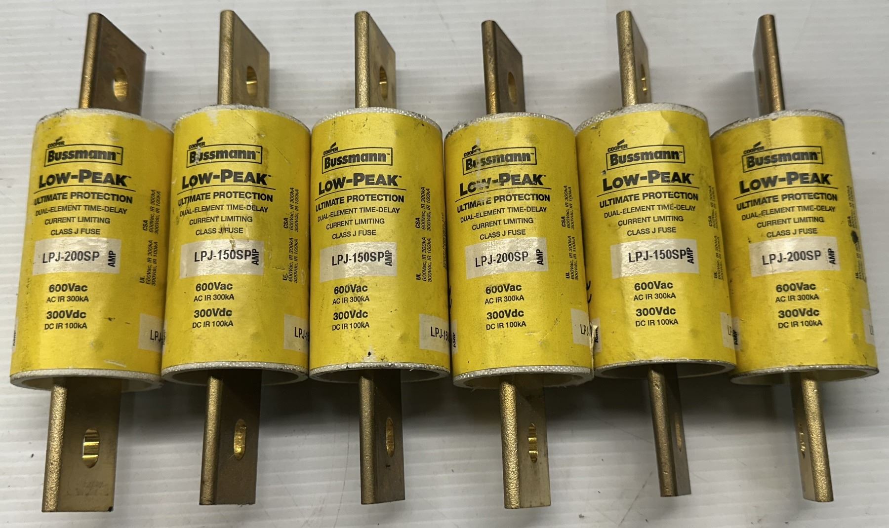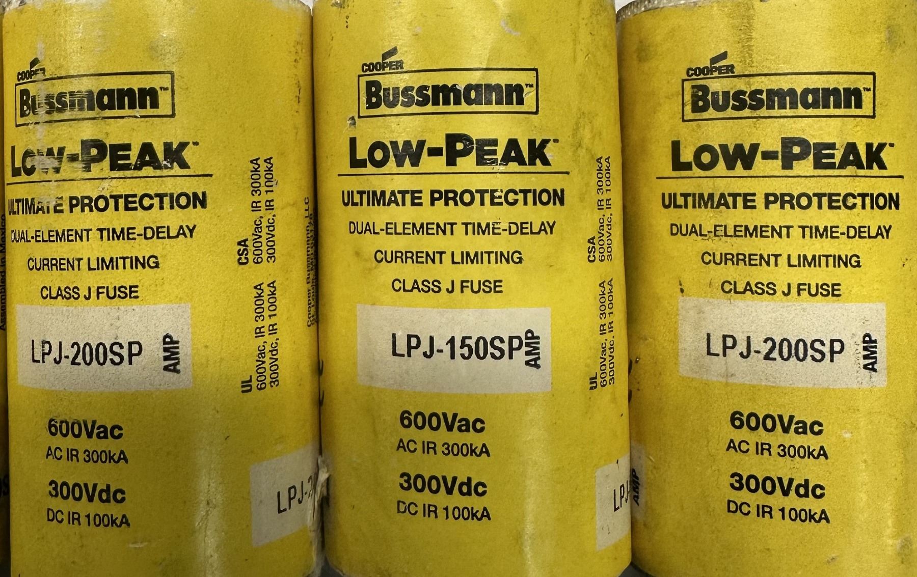 Lot of (6) Bussmann #LPJ-200SP & #LPJ-150SP Fuses