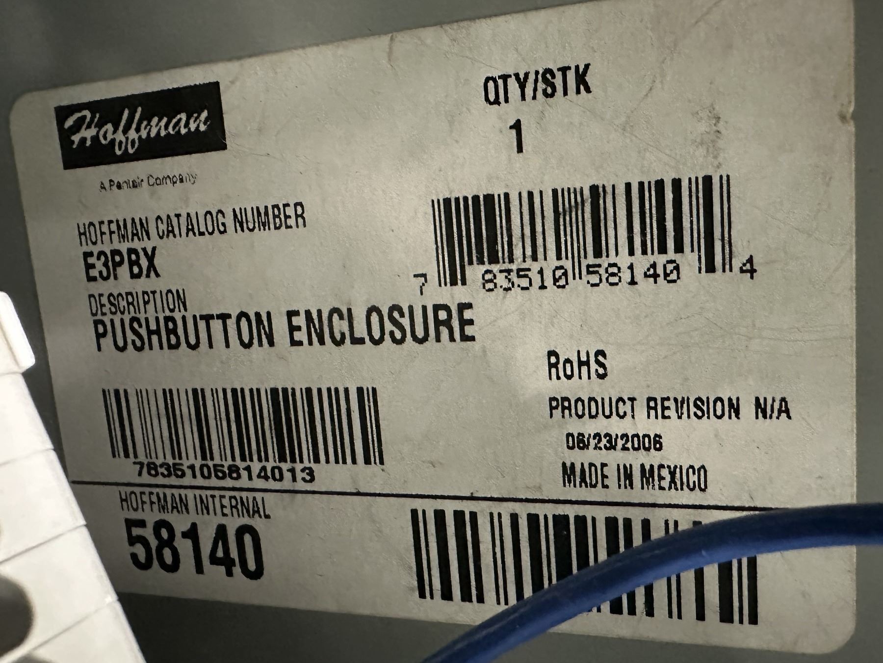 Lot of (6) Hoffman #E3PBX Push Button Enclosures