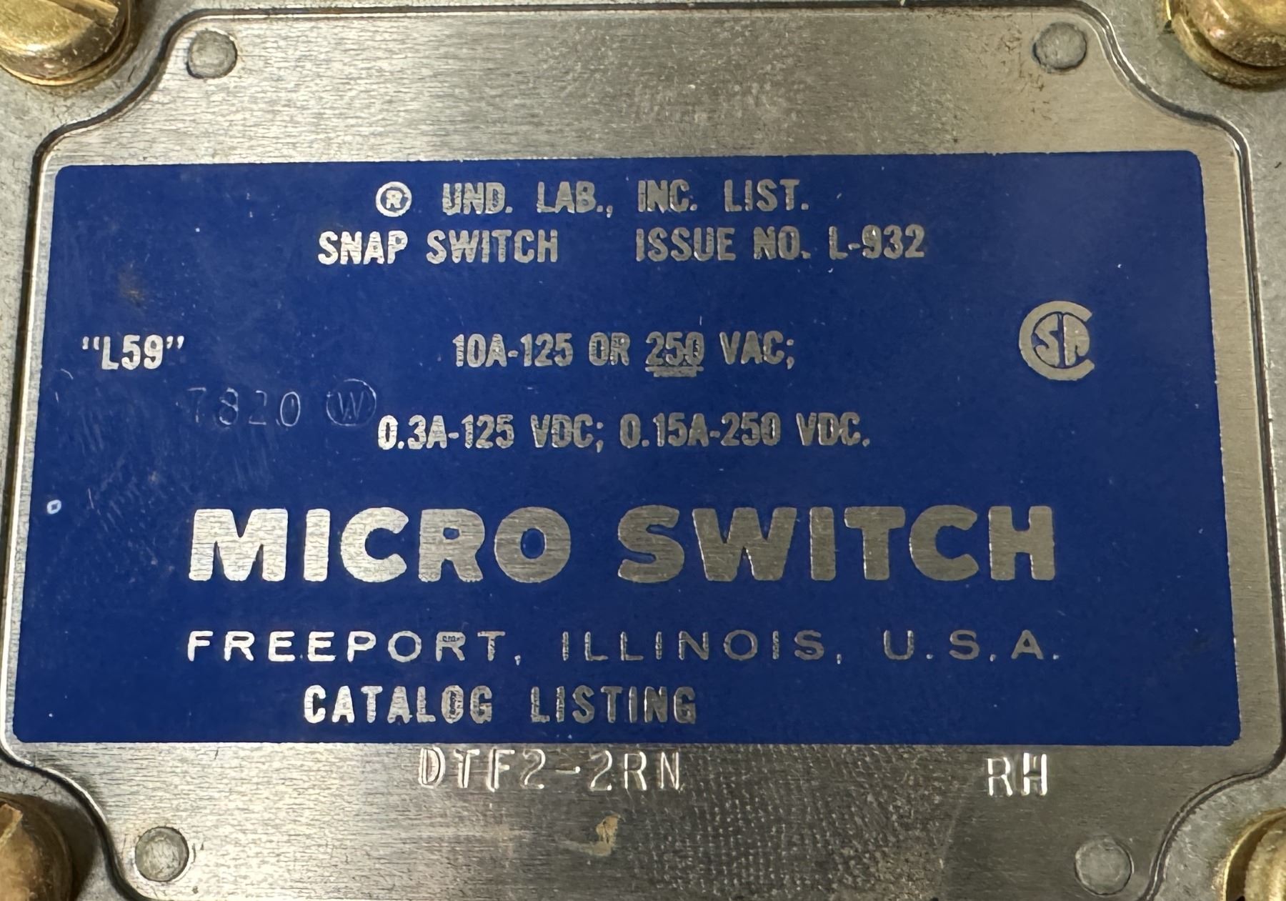 Lot of (6) Honeywell Microswitch #DTF2-2RN-RH