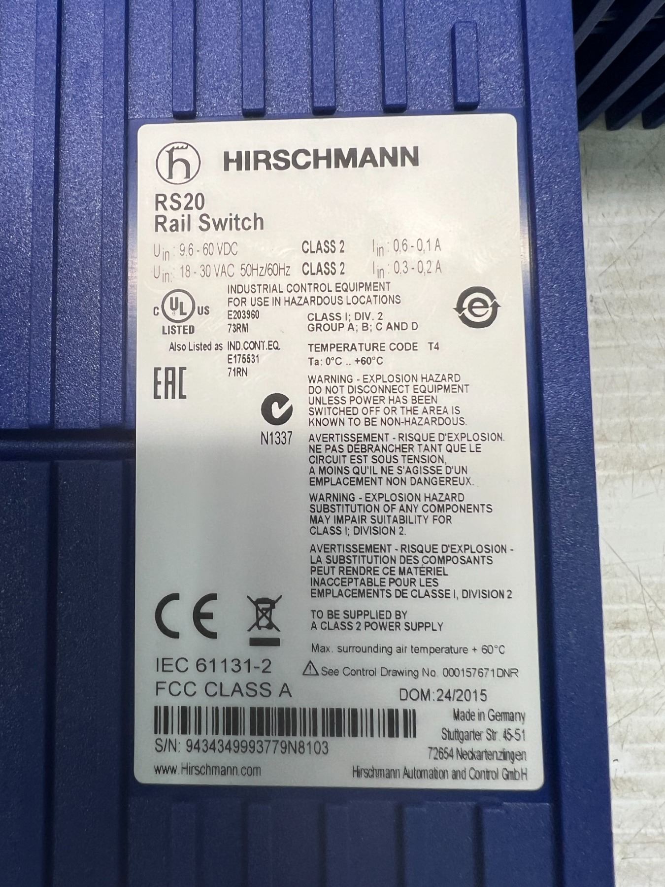 Lot of (7) Hirschmann #RS20 Rail Switches