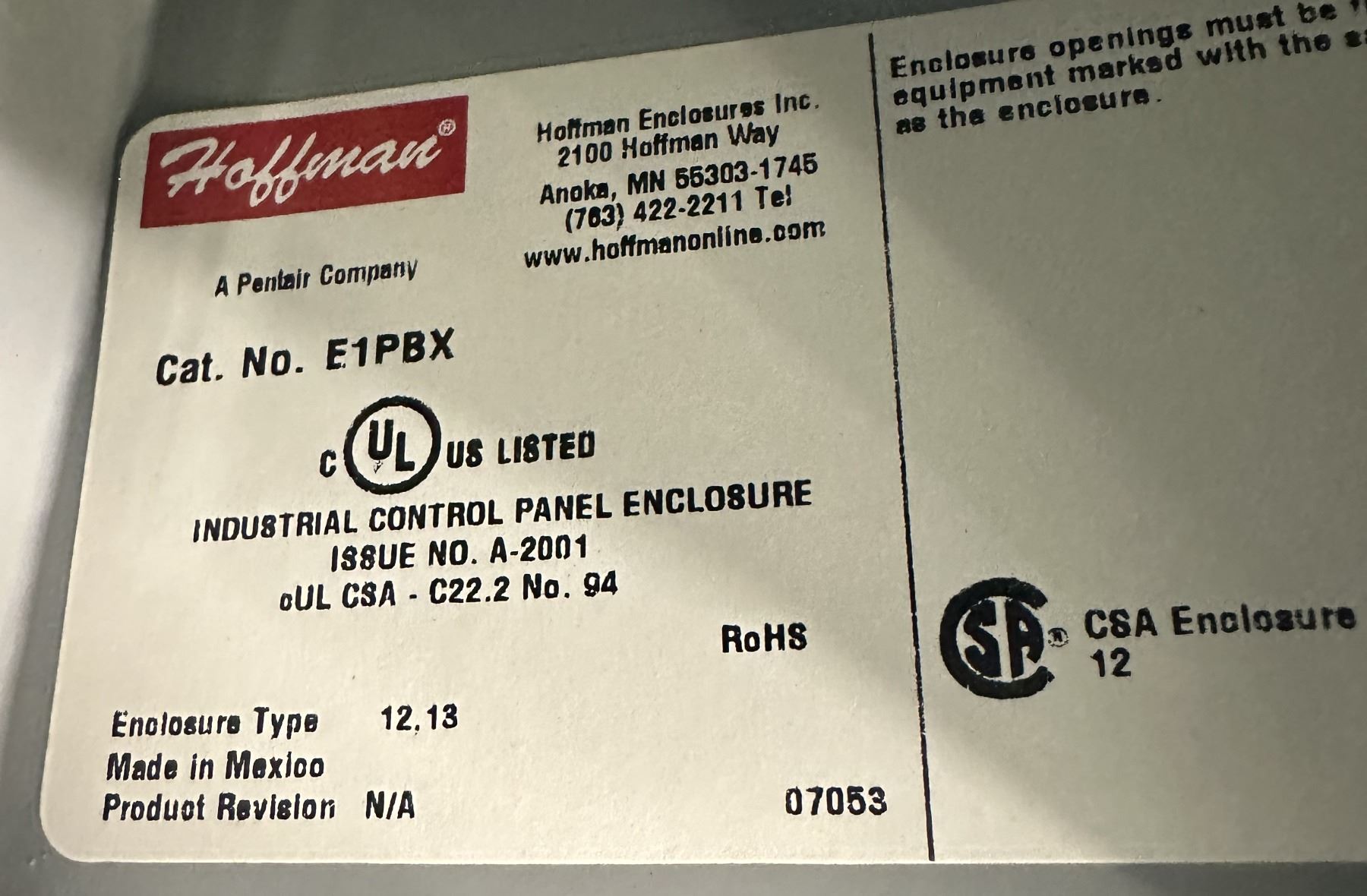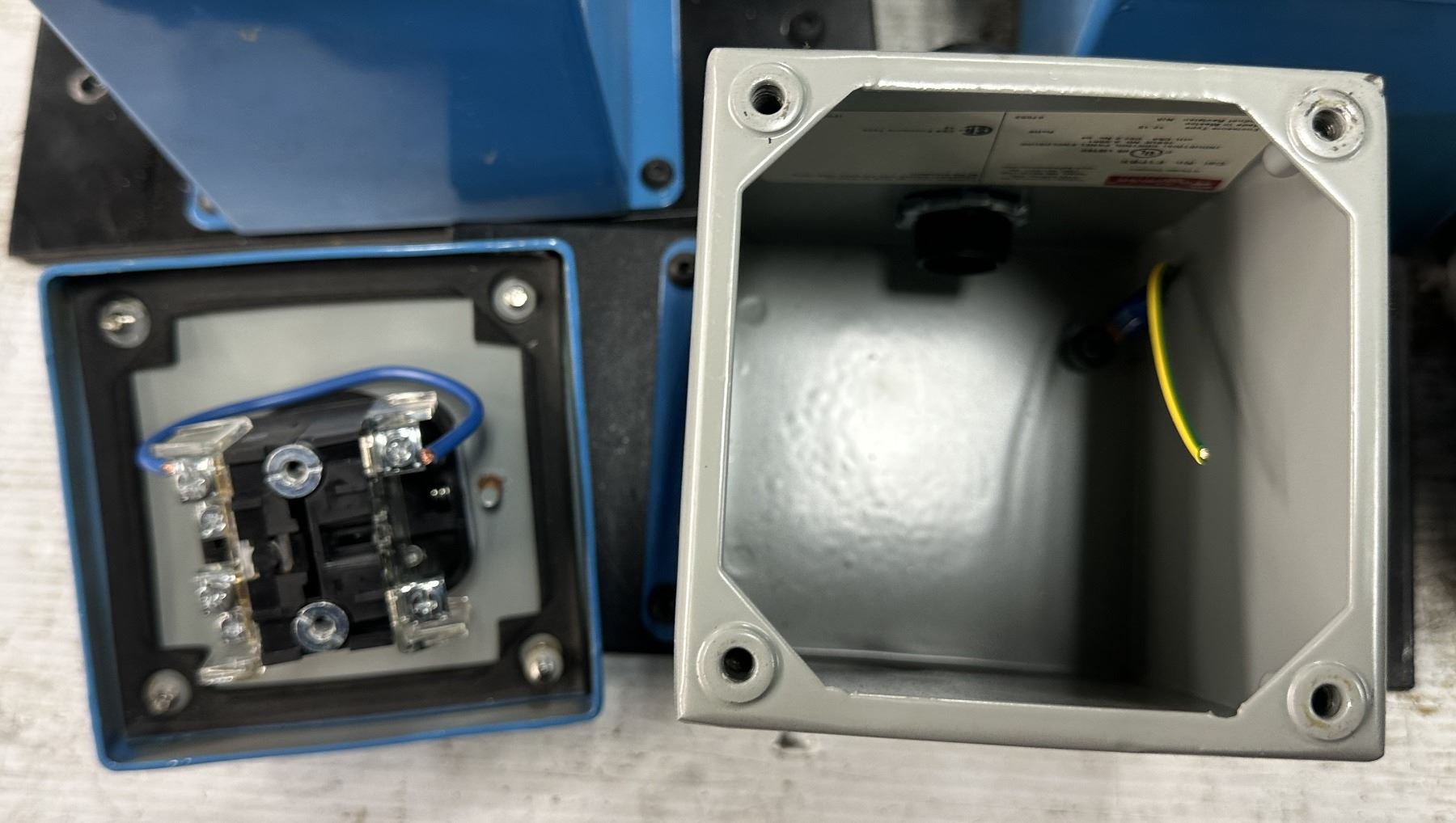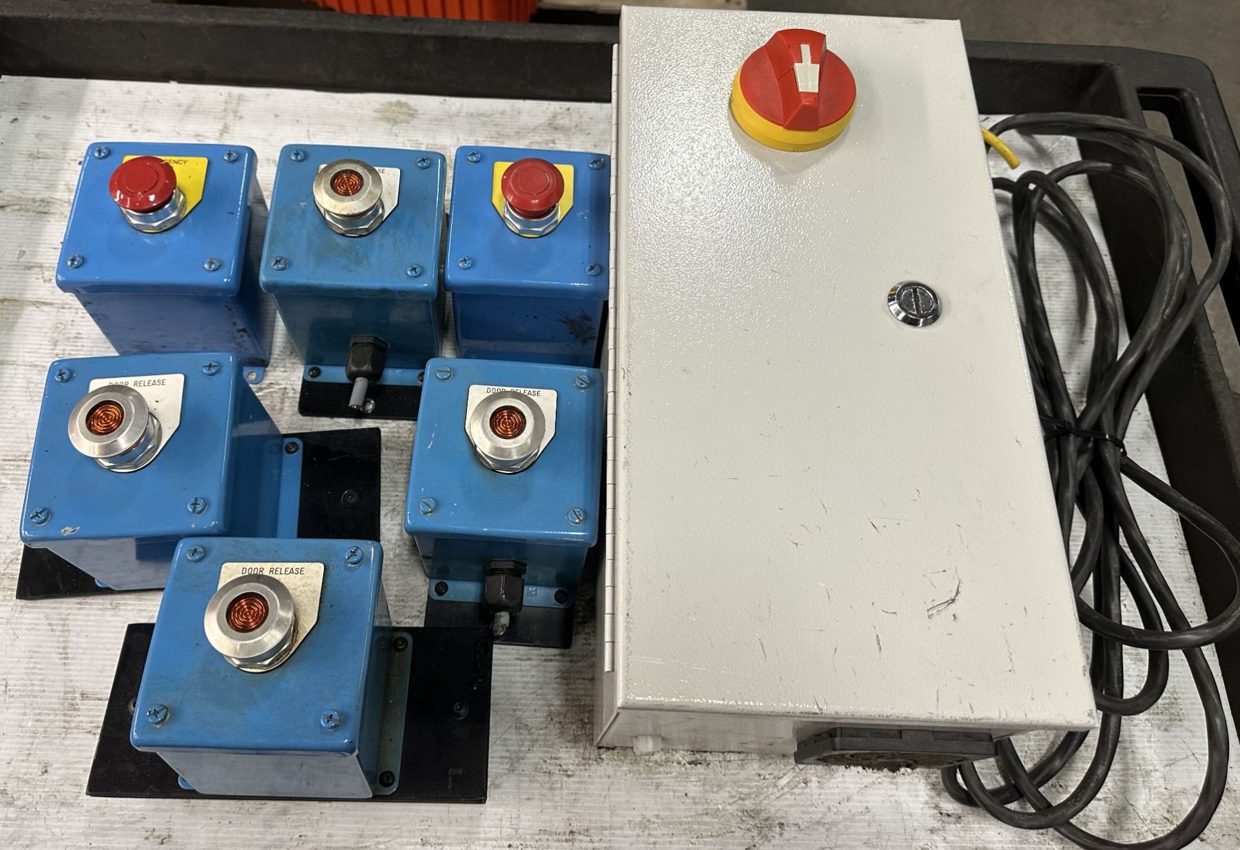 Lot of (7) Hoffman 6-#E1PBX Control Panel Enclosures & 1-#A14N128/SPL Cutout Box