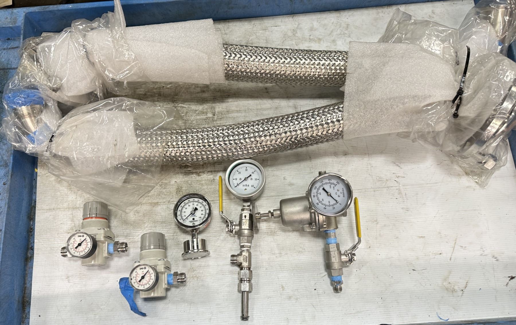 Lot of (7) Misc. Gages & Flex Pipe Items