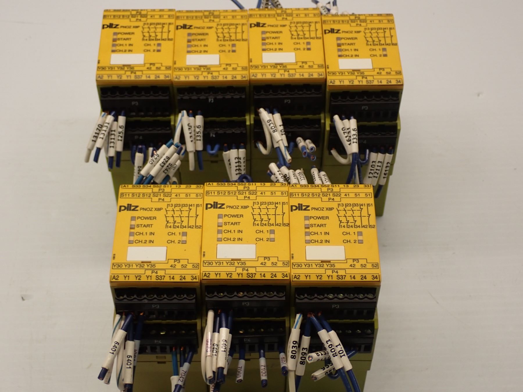 Lot of (7) Pilz #PNOZ X8P 24 VDC 3 n/o 2 n/c 2so Modules