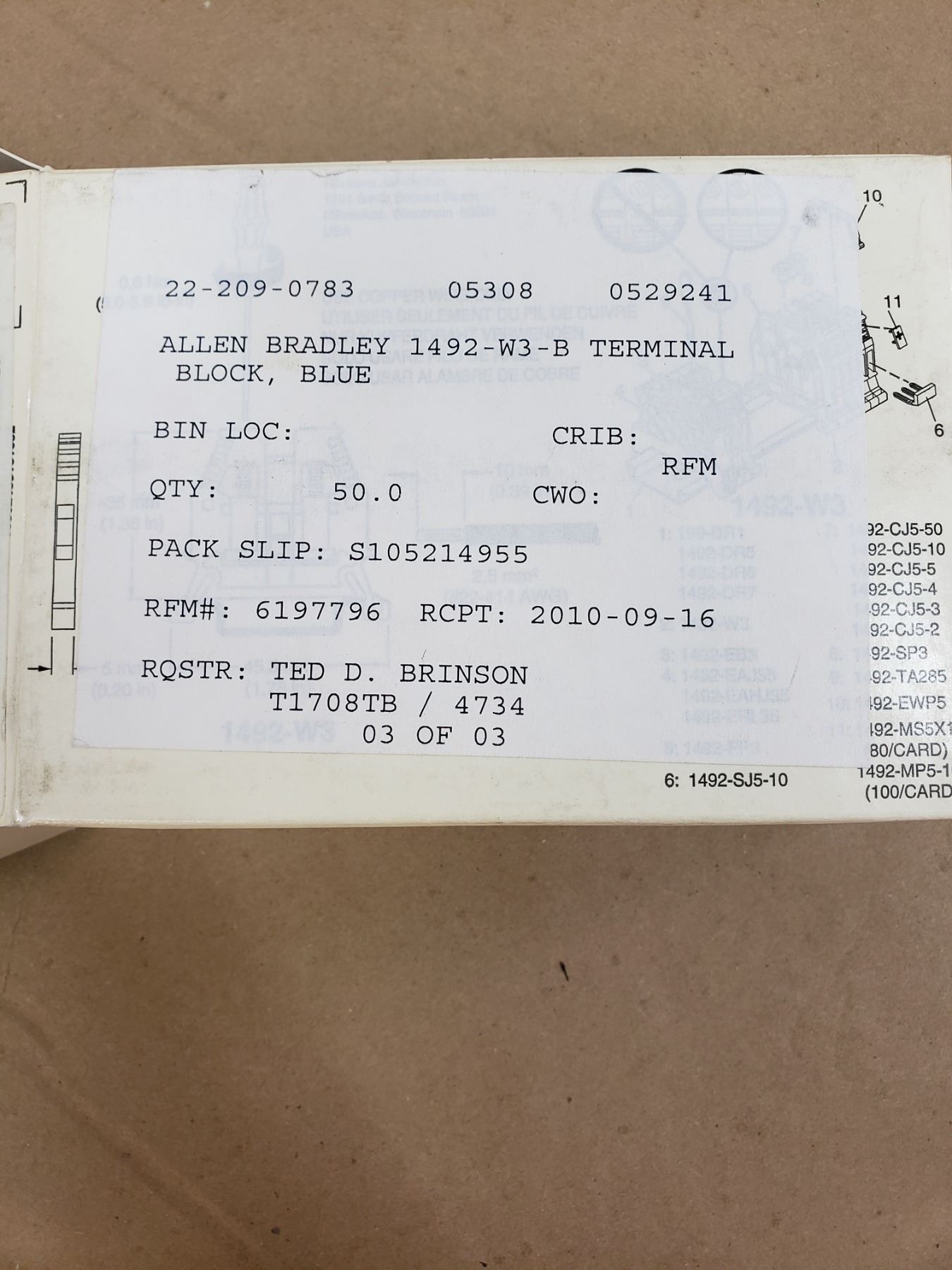 Lot of Allen-Bradley 1492-W3-B Terminal Blocks Blue