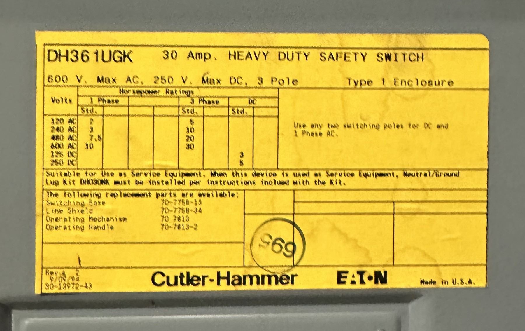 NOTE: ALL PARTS IN THIS AUCTION ARE EITHER REMOVED FROM WORKING MACHINERY OR SOURCED FROM INVENTORY CRIB CONSOLIDATIONS. ALL PARTS ARE BELIEVED TO BE IN GOOD WORKING CONDITION. ANY KNOWN DEFECTS WILL BE CALLED OUT IN THE DESCRIPTION SECTION. YOU MAY COME TO OUR FACILITY AT ANY TIME DURING BUSINESS HOURS TO INSPECT THESE PARTS. AS ALWAYS, THESE PARTS ARE BEING SOLD “AS IS”, WITHOUT RETURNS.