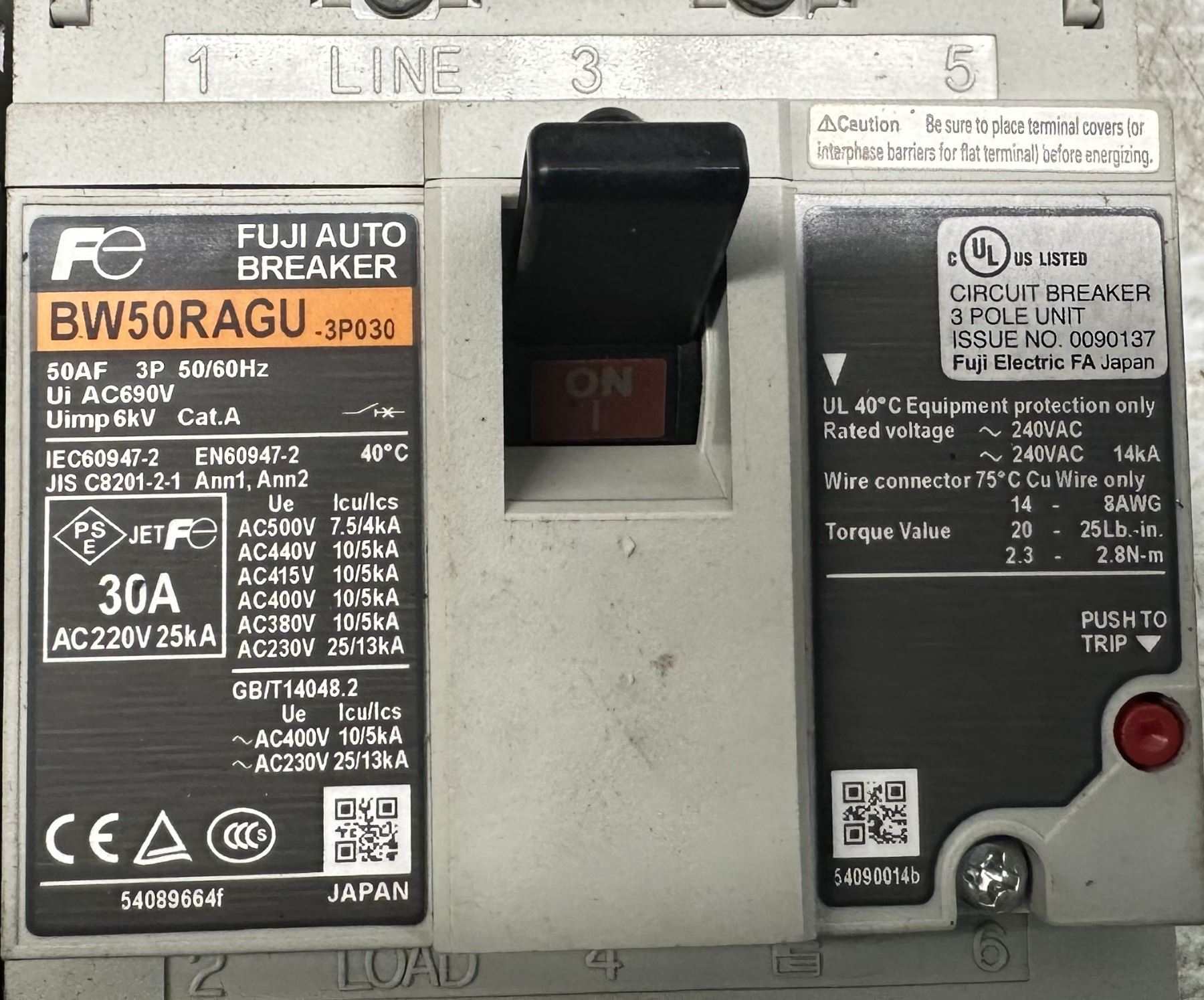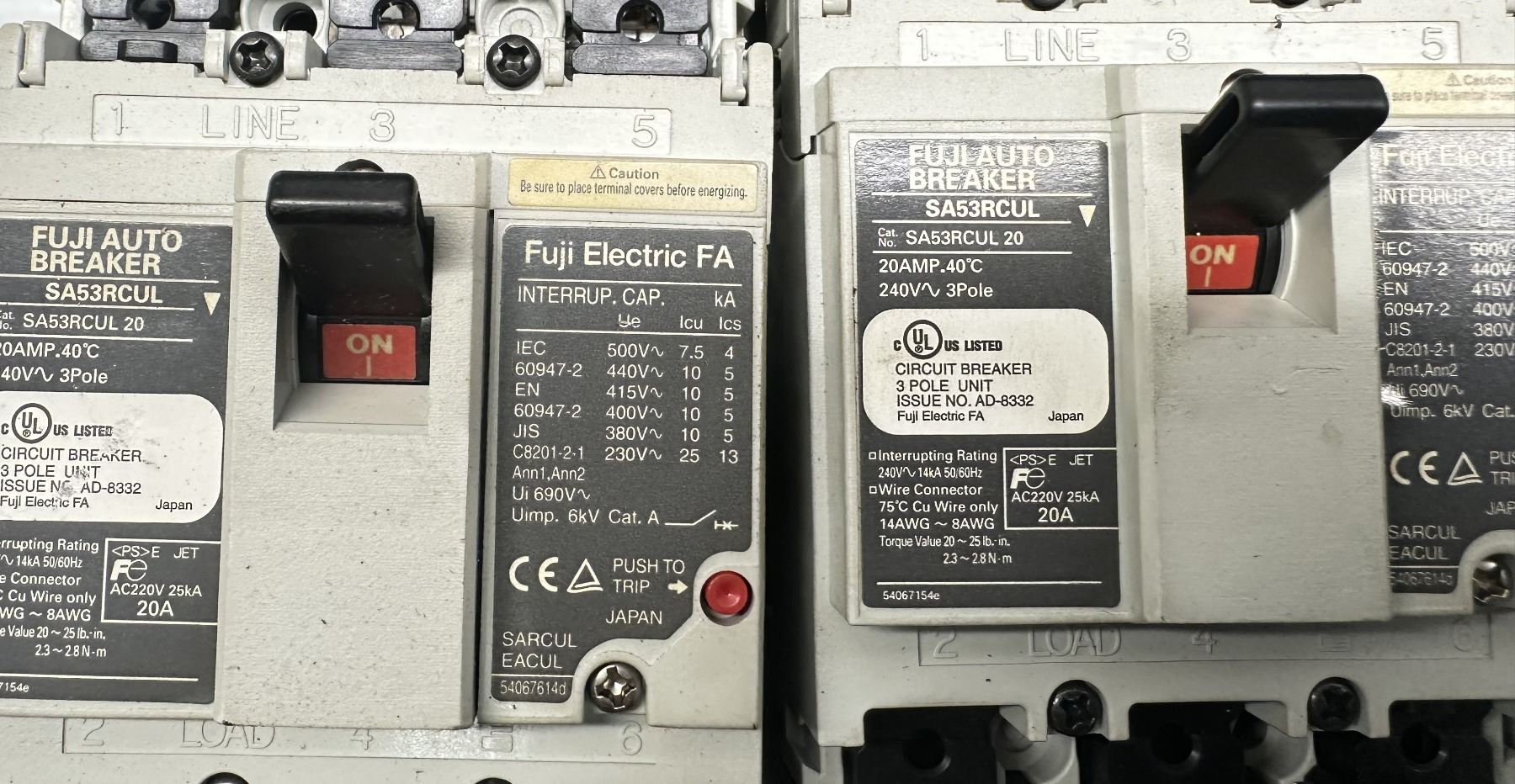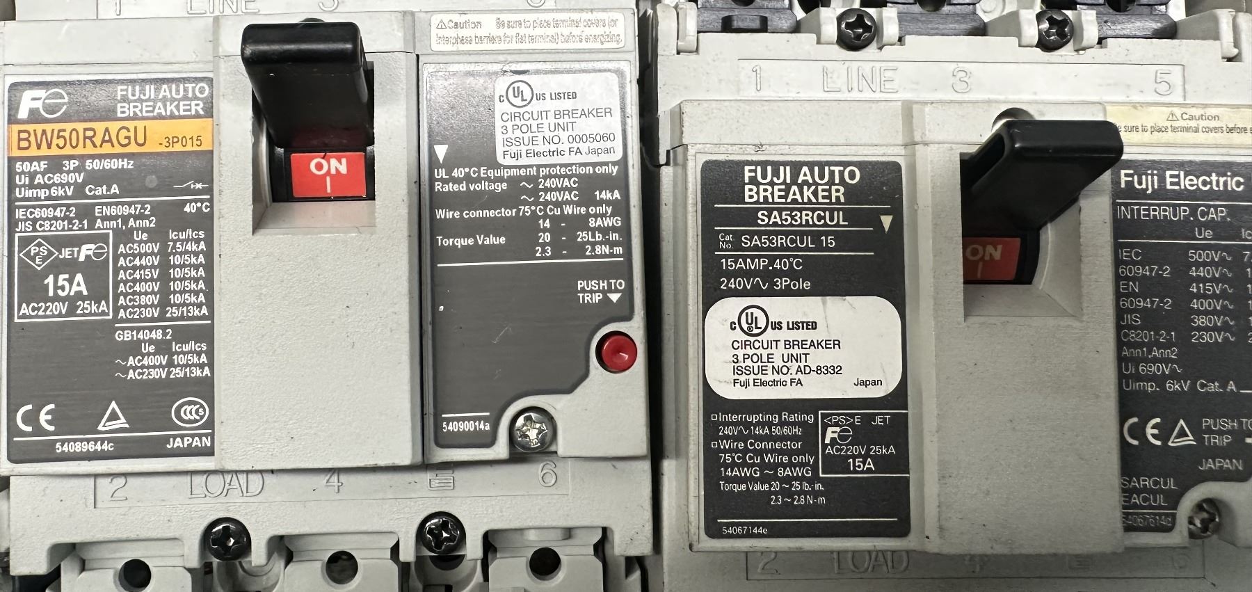 Lot of Misc. Fuji Circuit Breakers & Contactors