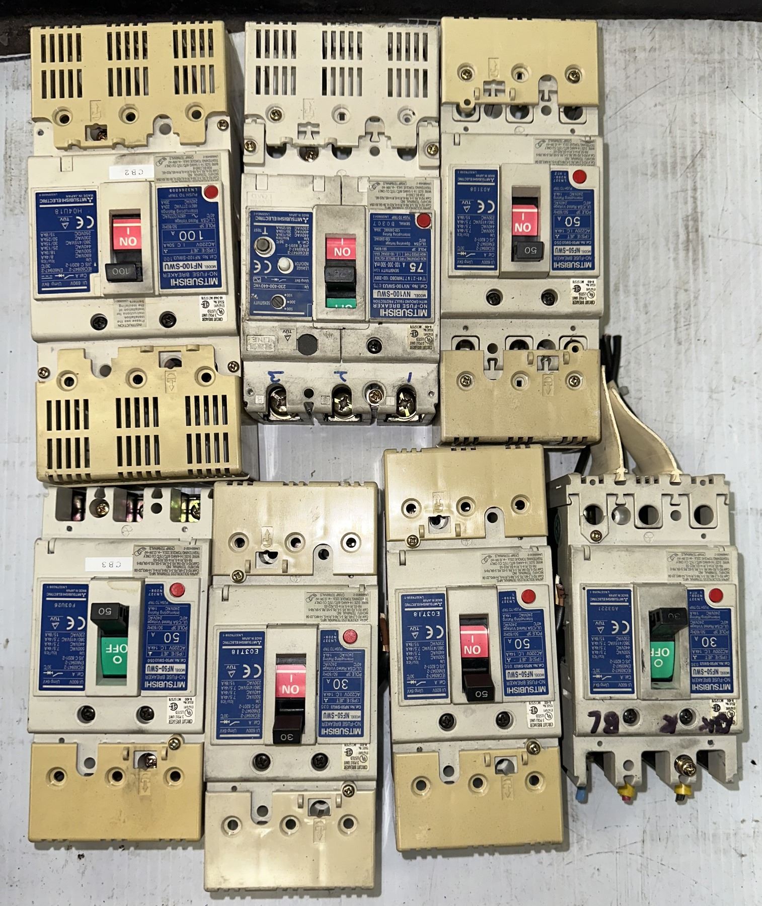 Lot of Misc. Mitsubishi Circuit Breakers as Pictured
