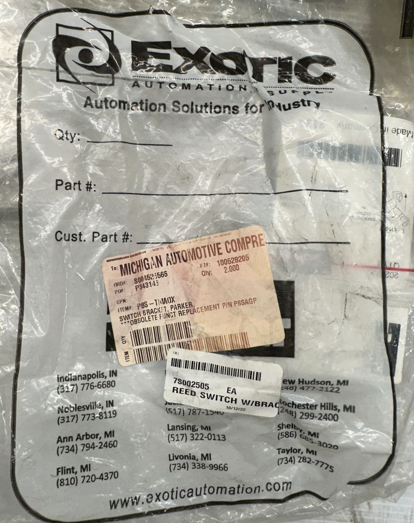 NOTE: ALL PARTS IN THIS AUCTION ARE EITHER REMOVED FROM WORKING MACHINERY OR SOURCED FROM INVENTORY CRIB CONSOLIDATIONS. ALL PARTS ARE BELIEVED TO BE IN GOOD WORKING CONDITION. ANY KNOWN DEFECTS WILL BE CALLED OUT IN THE DESCRIPTION SECTION. YOU MAY COME TO OUR FACILITY AT ANY TIME DURING BUSINESS HOURS TO INSPECT THESE PARTS. AS ALWAYS, THESE PARTS ARE BEING SOLD “AS IS”, WITHOUT RETURNS.