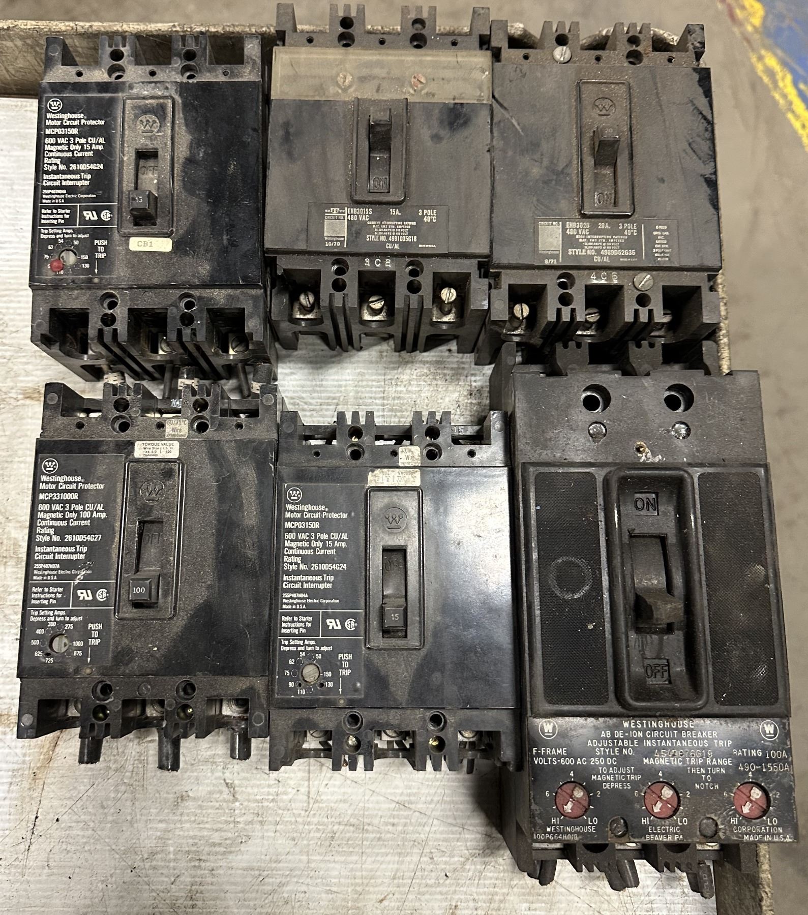 Lot of Misc. Westinghouse Circuit Breakers